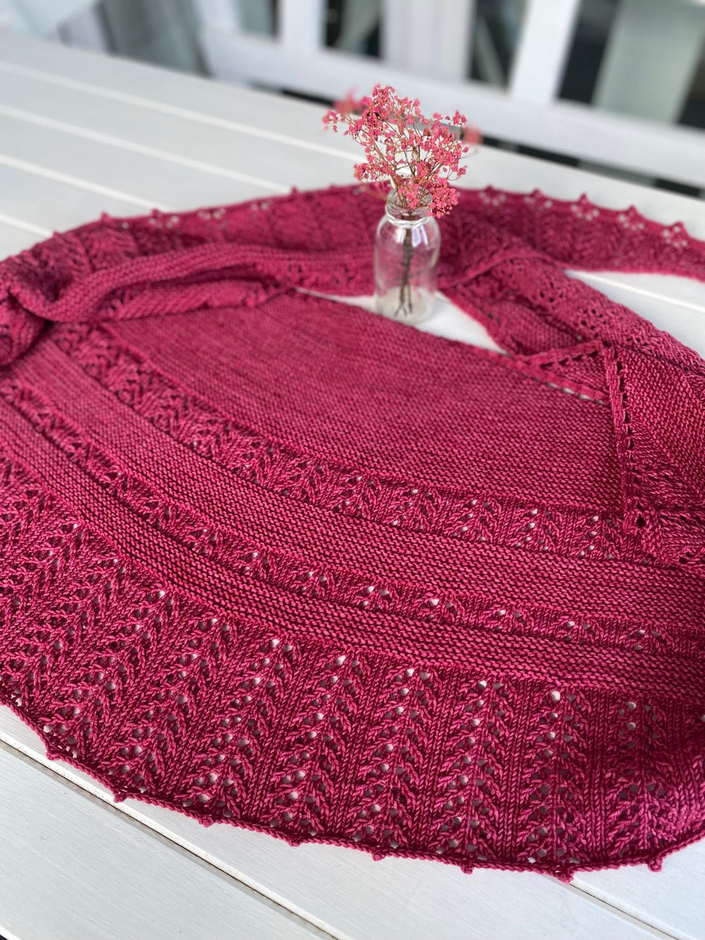 Afmetingen circa 190 cm bij 70 cm (direct na het haken zonder op te spannen)