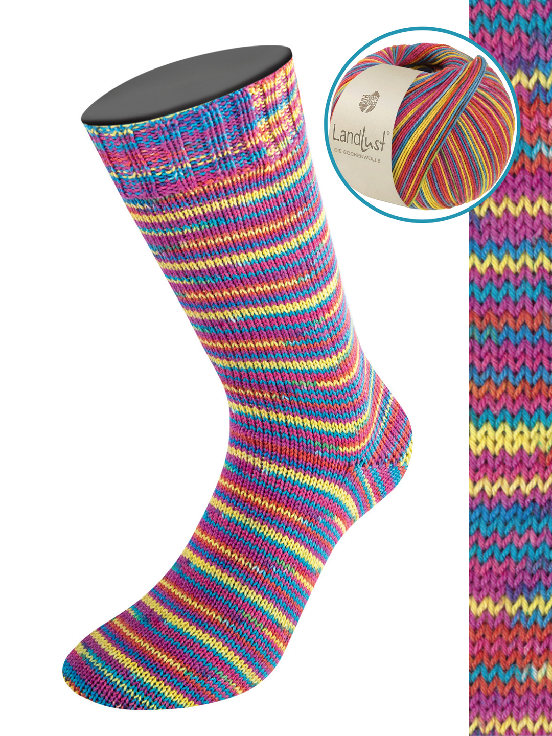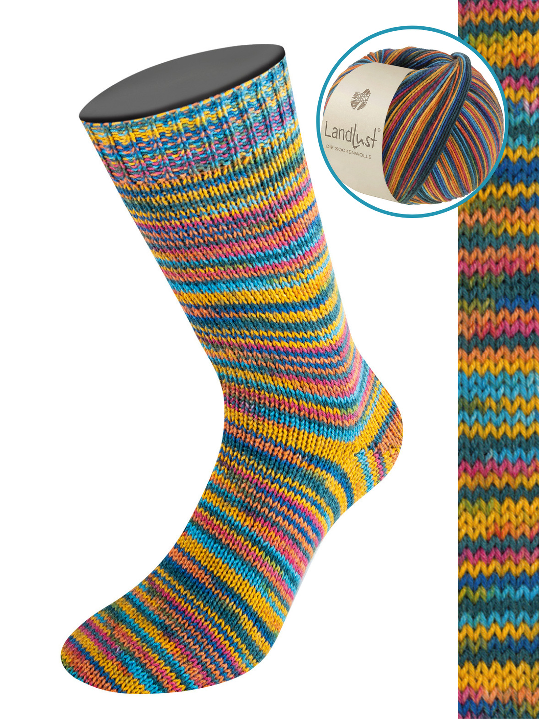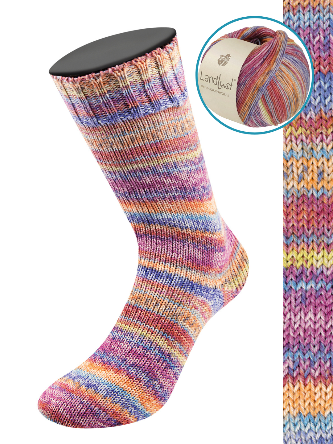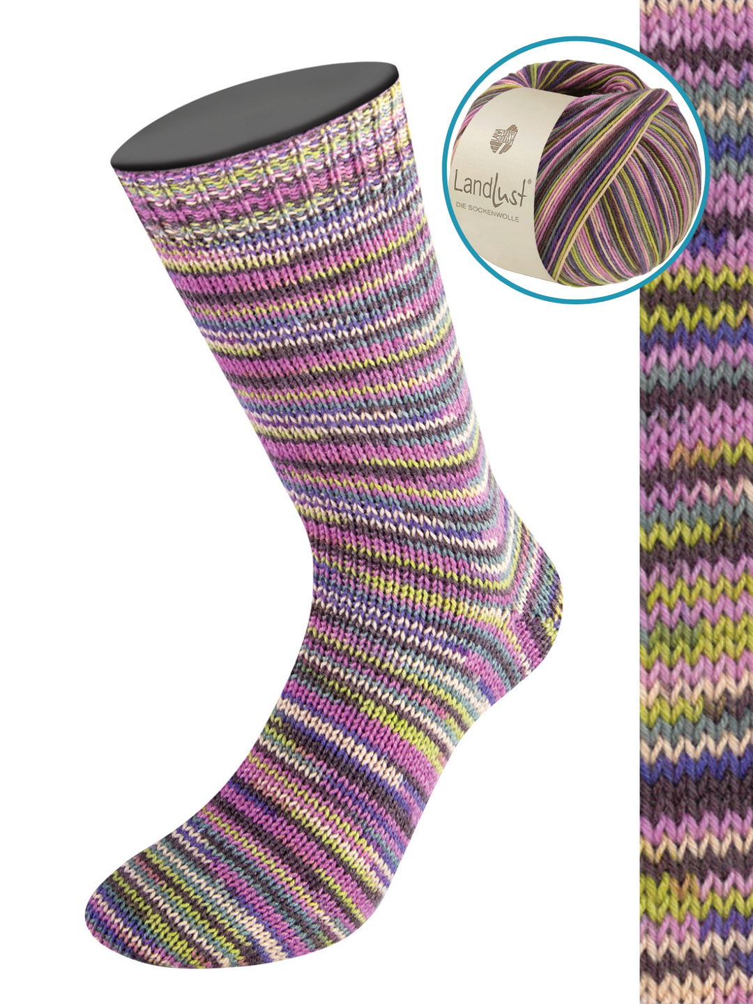 Samen met Landlust heeft Lana Grossa een sokkenwol gecreëerd in dezelfde kwaliteit als de Meilenweit sokkenwol. Een bol van deze heerlijke wol is goed voor een paar sokken (tot en met maat 46).