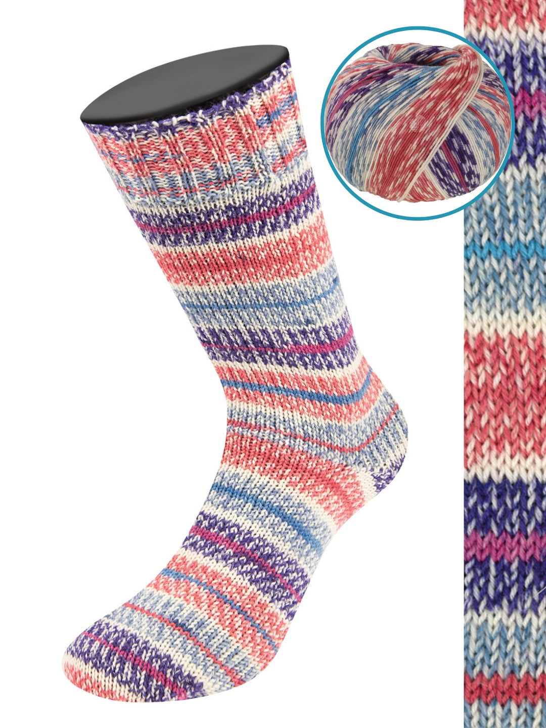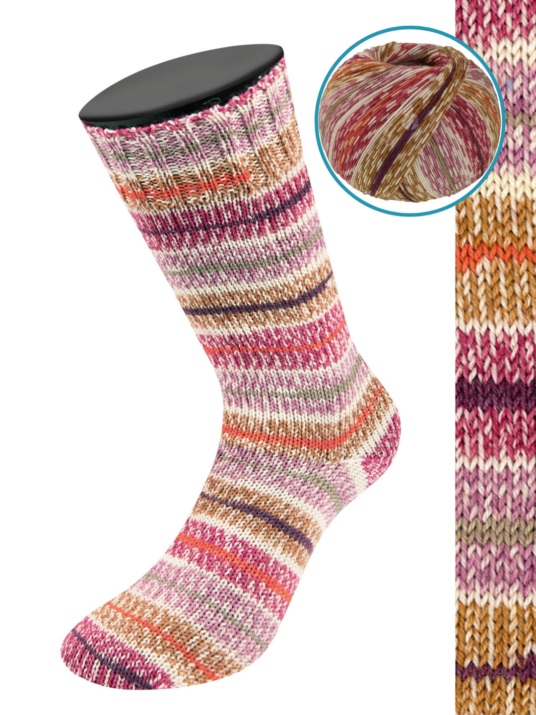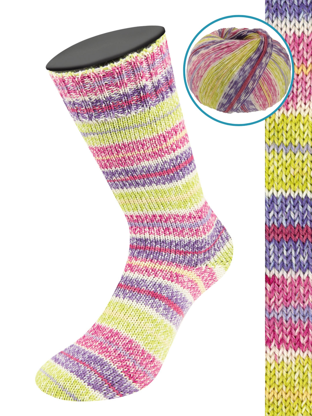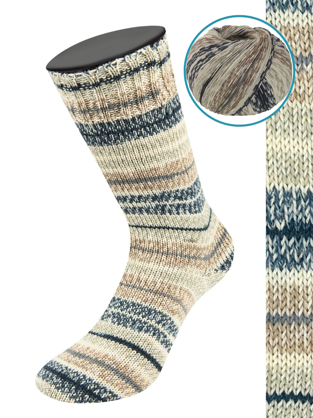 Meilenweit van Lana Grossa is een goed garen voor sokken. Met 70% wol en 5% kasjmier zijn de sokken aangenaam en warm. De 25% polyamide zorgt voor sterkte. Een bol van deze heerlijke wol is goed voor een paar sokken (tot en met maat 46).