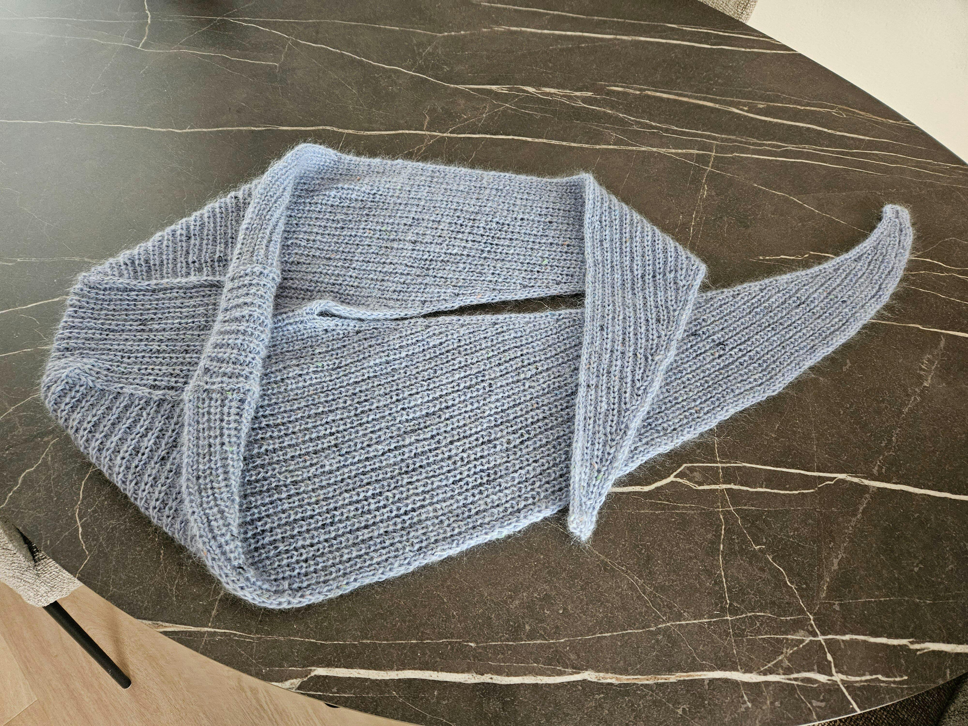 Ik had nog een bol garen over van de zigzag sjaal, bol bijgekocht en sjaal gebreid in patroon vallende steken.
