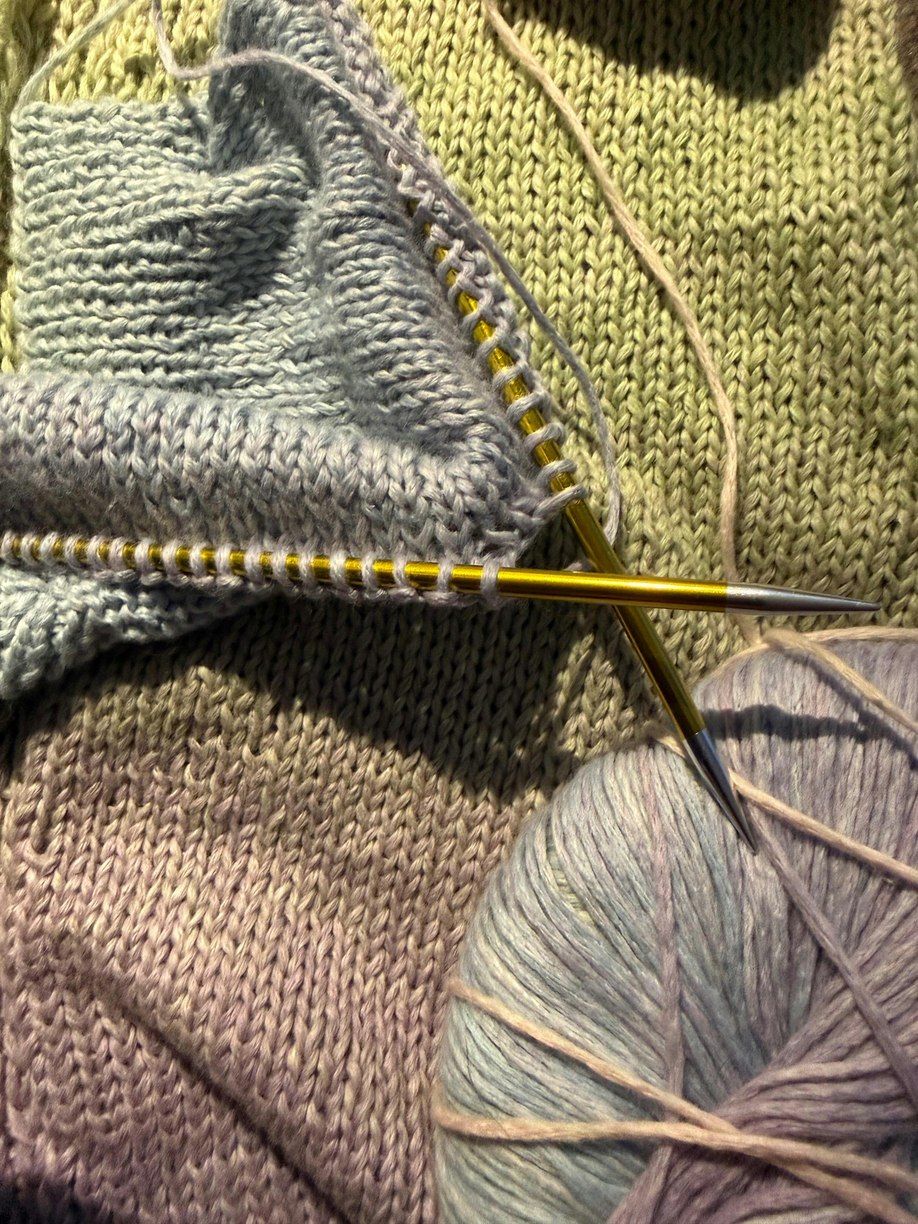 Ik ben een trui aan het breien met 3 draden. Twee draden zijn Cool wool Vintage en 1 draad silkhair. Met nld nr 8 gaat t lekker snel. Wordt erg mooi door t kleurverloop. Trui is model 2 uit boekje NERA van Lana Grossa.
