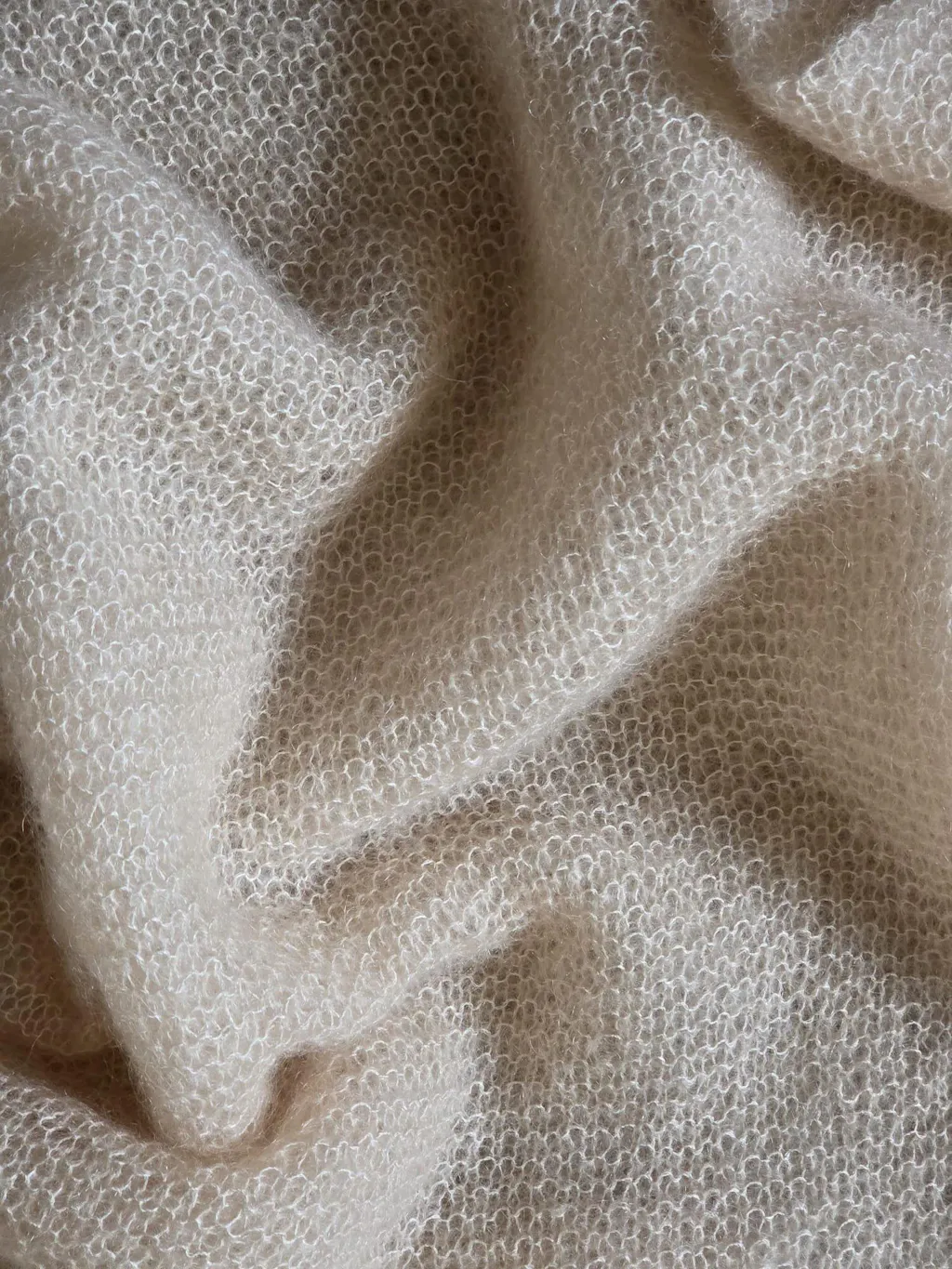 De Silkhair print stola was een kerstcadeau voor mijn schoondochter. Mijn andere schoondochter wilde van deze wol en zelfde patroon een sjaal voor haar verjaardag. Maar dan wel een driehoeksjaal en van Silkhair. Nu het geen breipakket was had ik de nodige vragen aan Knottenwol: hoeveel bollen heb ik nu nodig, heb ik het aantal steken en meerderingen goed uitgerekend, advies over de kleur lichtbeige of poederbeige mag het uiteindelijke resultaat er wezen!!! Bedankt!
