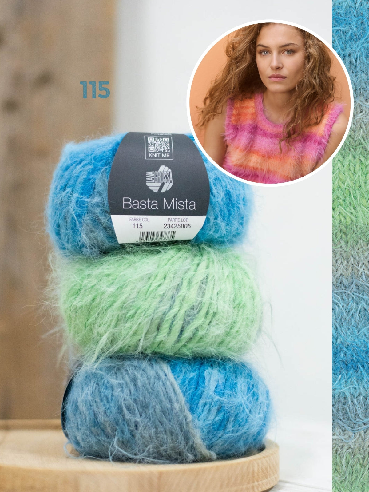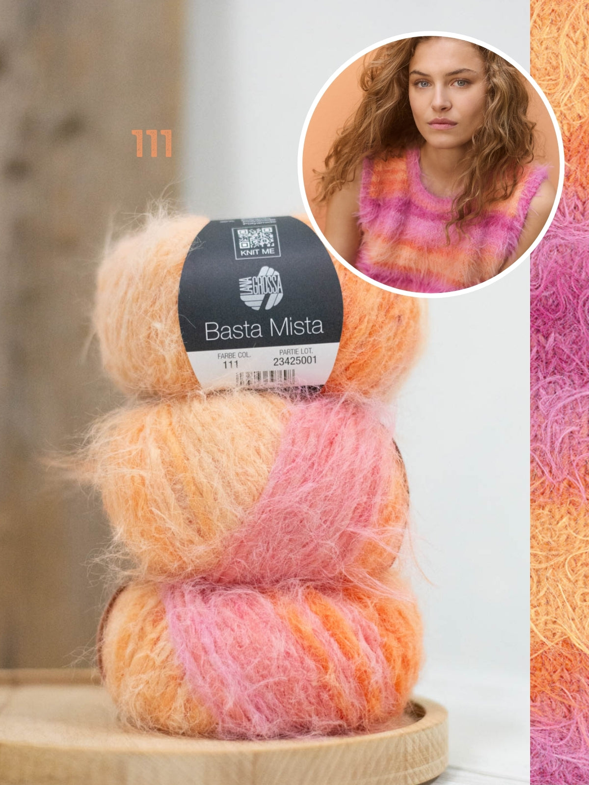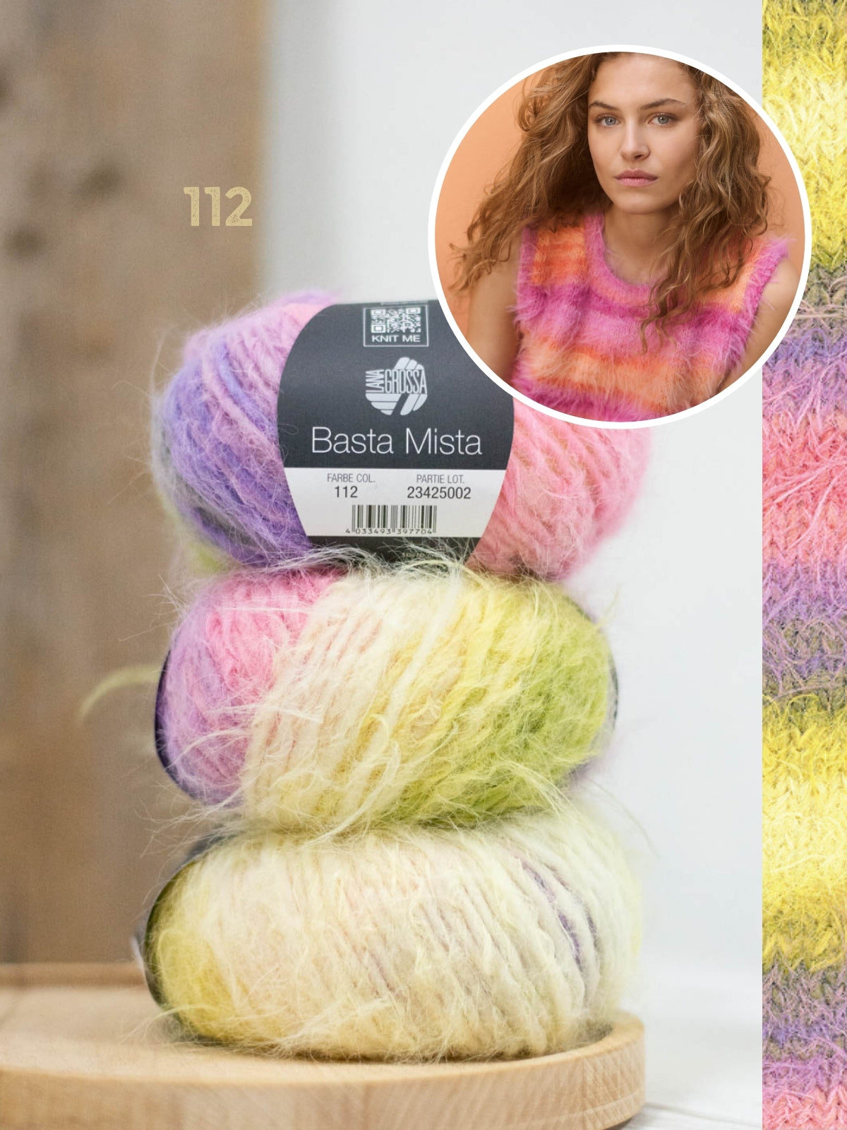 Het pakket bestaat uit 5/6 bollen Basta Mista en het Lookbook 20 magazine van Lana Grossa. De benodigde breinaalden (naaldpunten 4mm en 6mm, korte naaldpunten 4mm, draad 40cm en 60cm of 80cm) kun je hieronder toevoegen aan je winkelmandje.