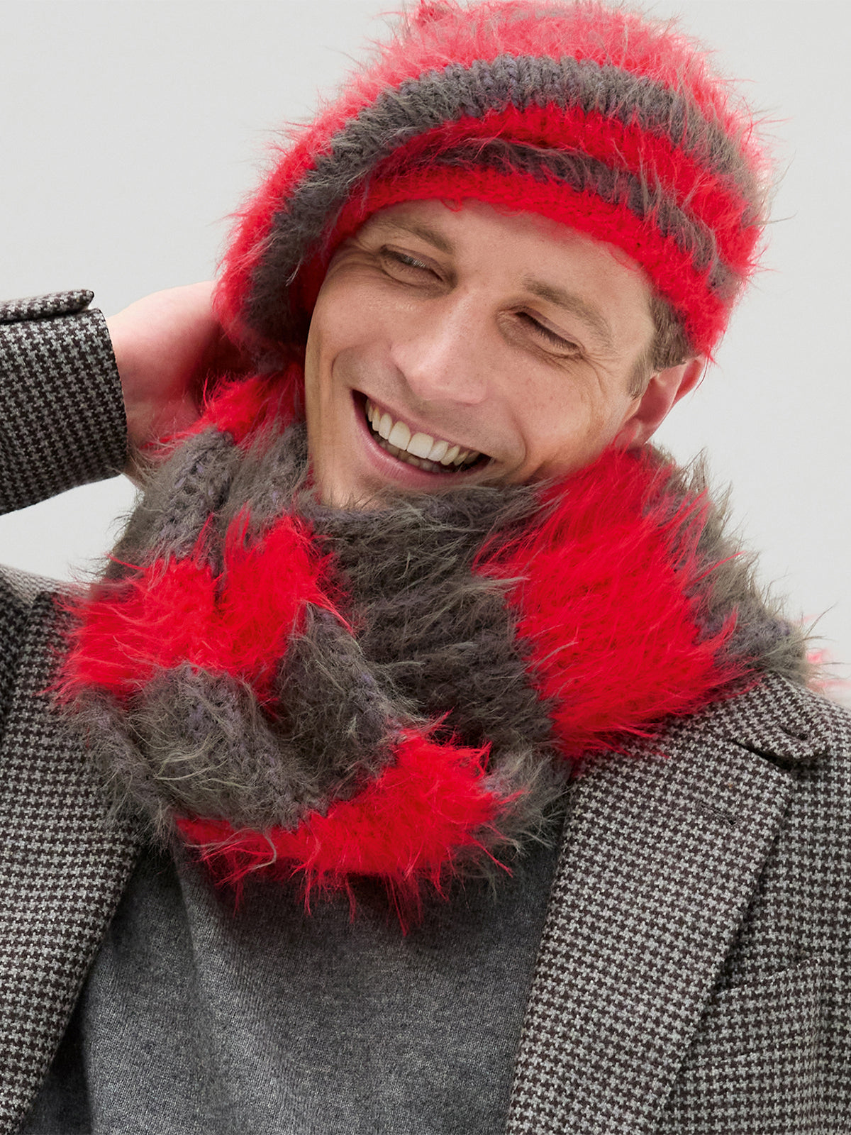 Wikkel je helemaal in warmte met deze leuke set! Met dit pakket brei je een vrolijke colorblock sjaal en een bijpassende barret.