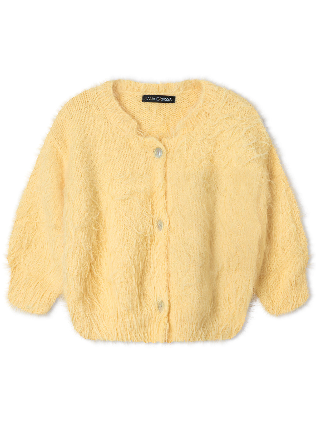 Dit vest heeft een cropped lengte en de mouwen zijn halflang. Het vest wordt in panden gebreid.