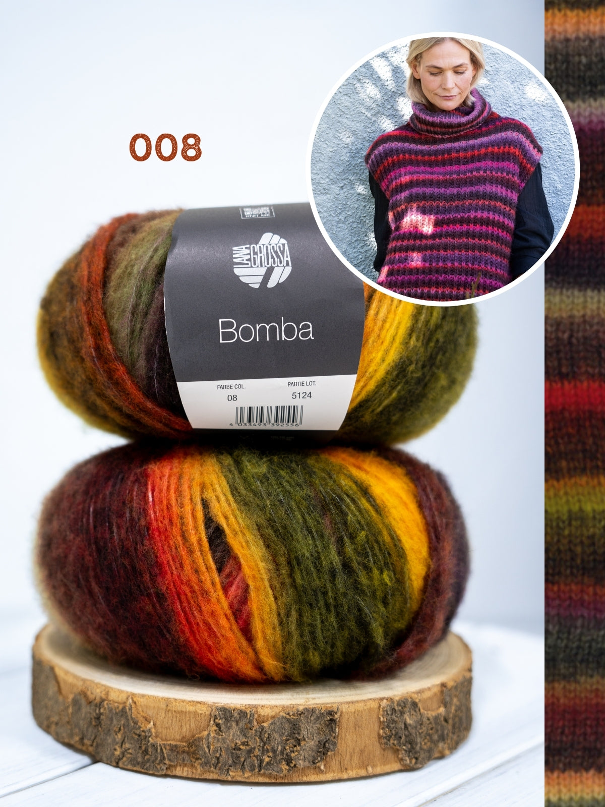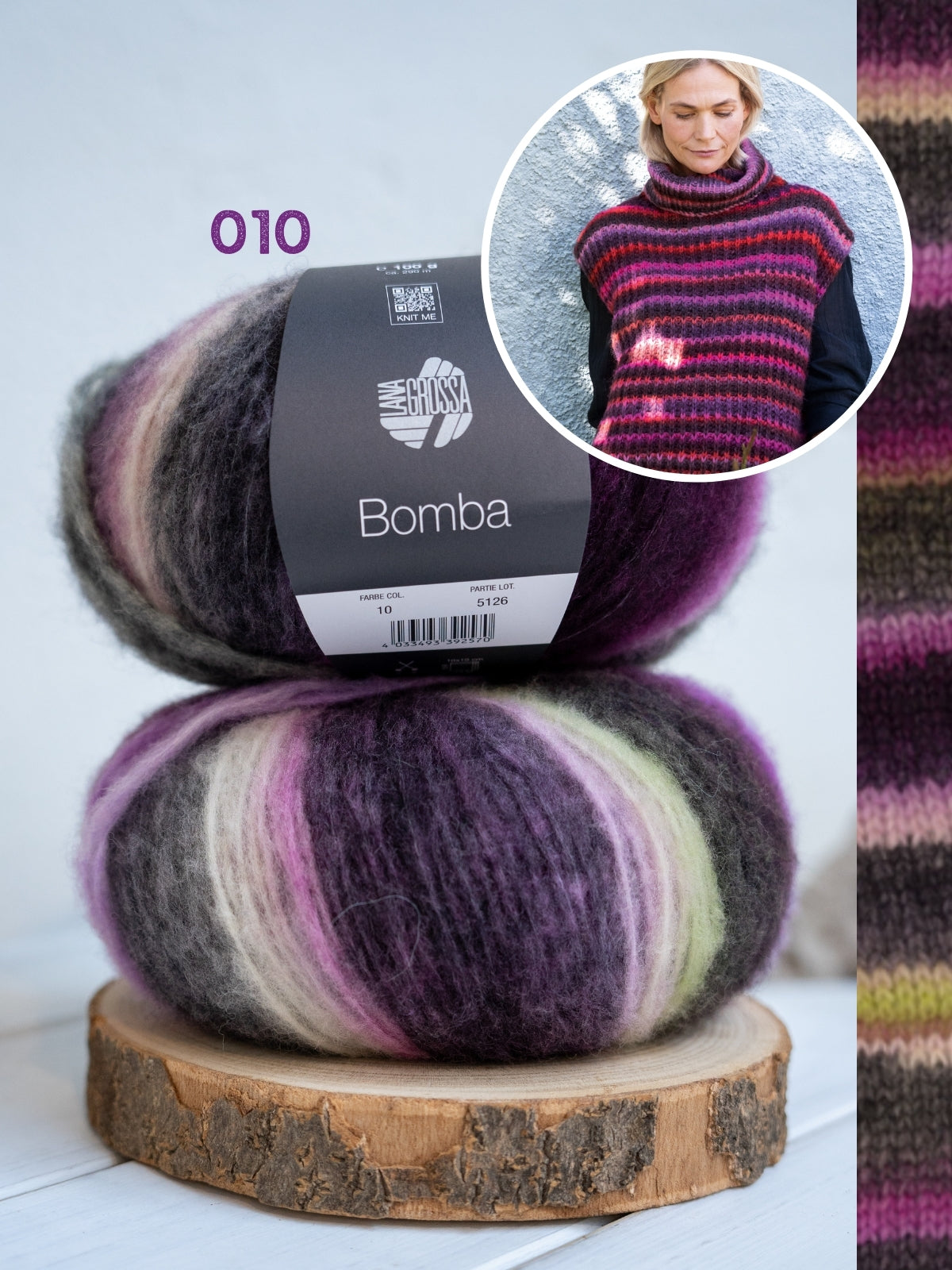 Het breipakket bestaat uit 2/3 bollen Bomba en de Bomba flyer van Lana Grossa. Hieronder kun je de benodigde breinaalden (korte en lange naaldpunten 5mm en 6mm met draad 40cm en 80cm en eventueel steekmarkeerders) aan je winkelmandje toevoegen.