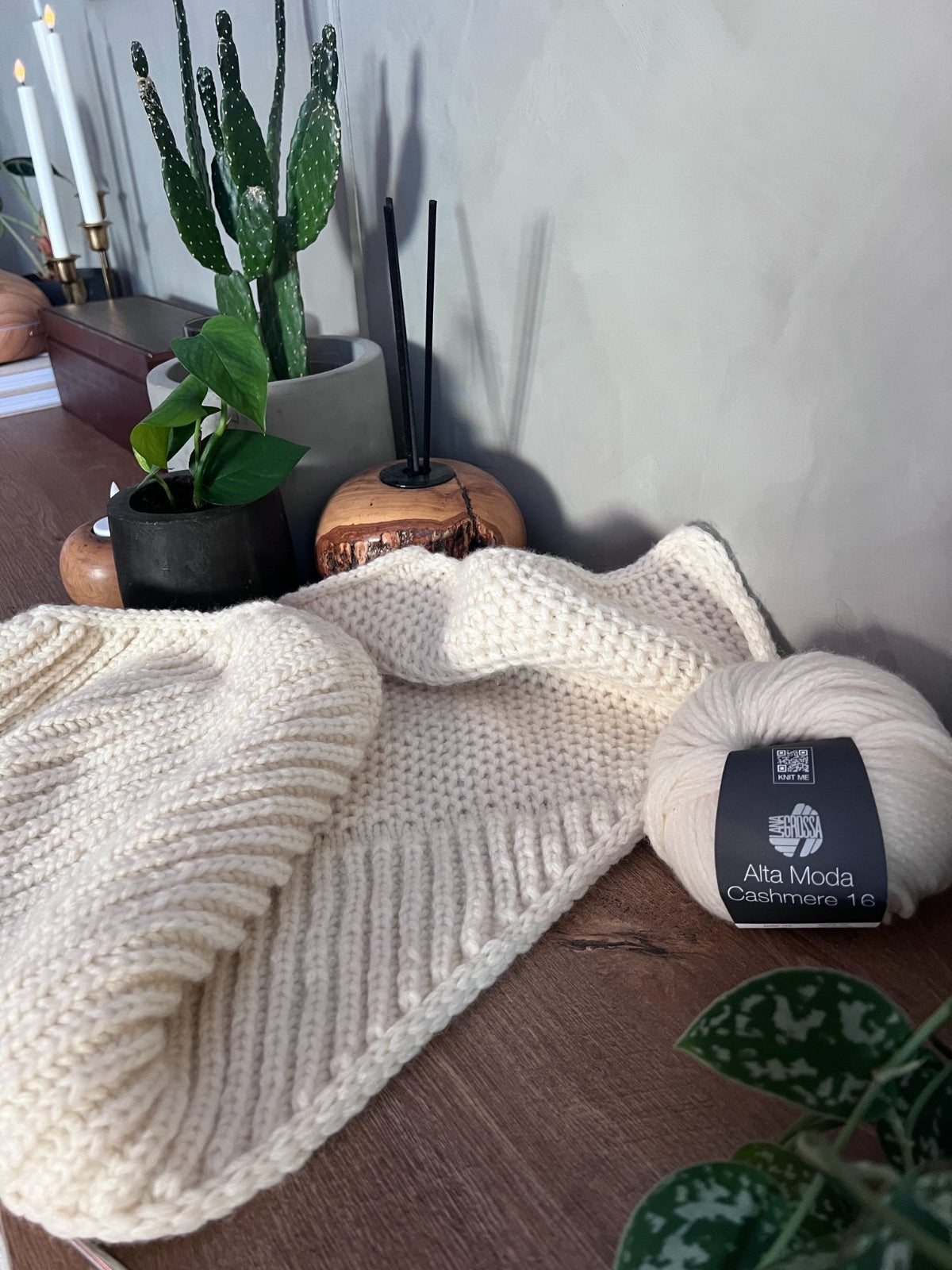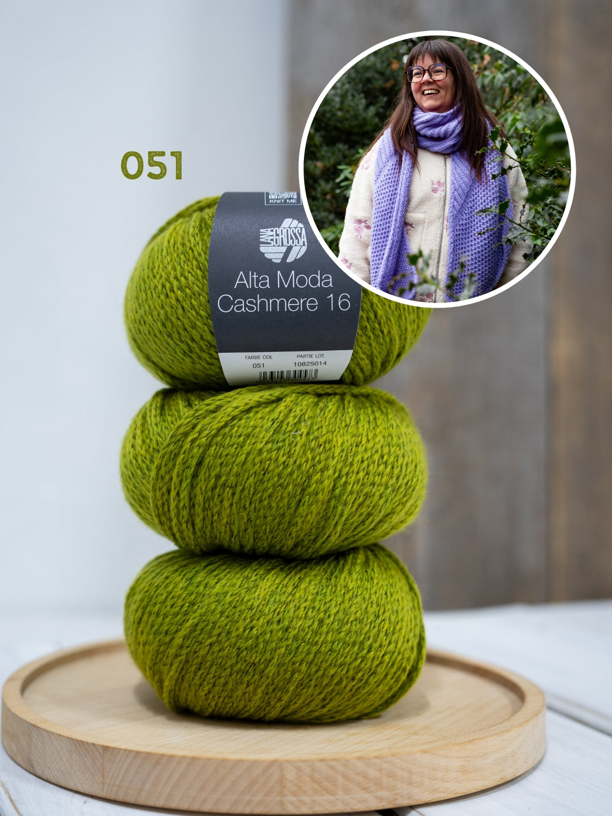 Het pakket bestaat uit 6 bollen Alta Moda Cashmere 16 en het kooppatroon. Hieronder kun je ook de aangeraden breinaalden (6mm) toevoegen.