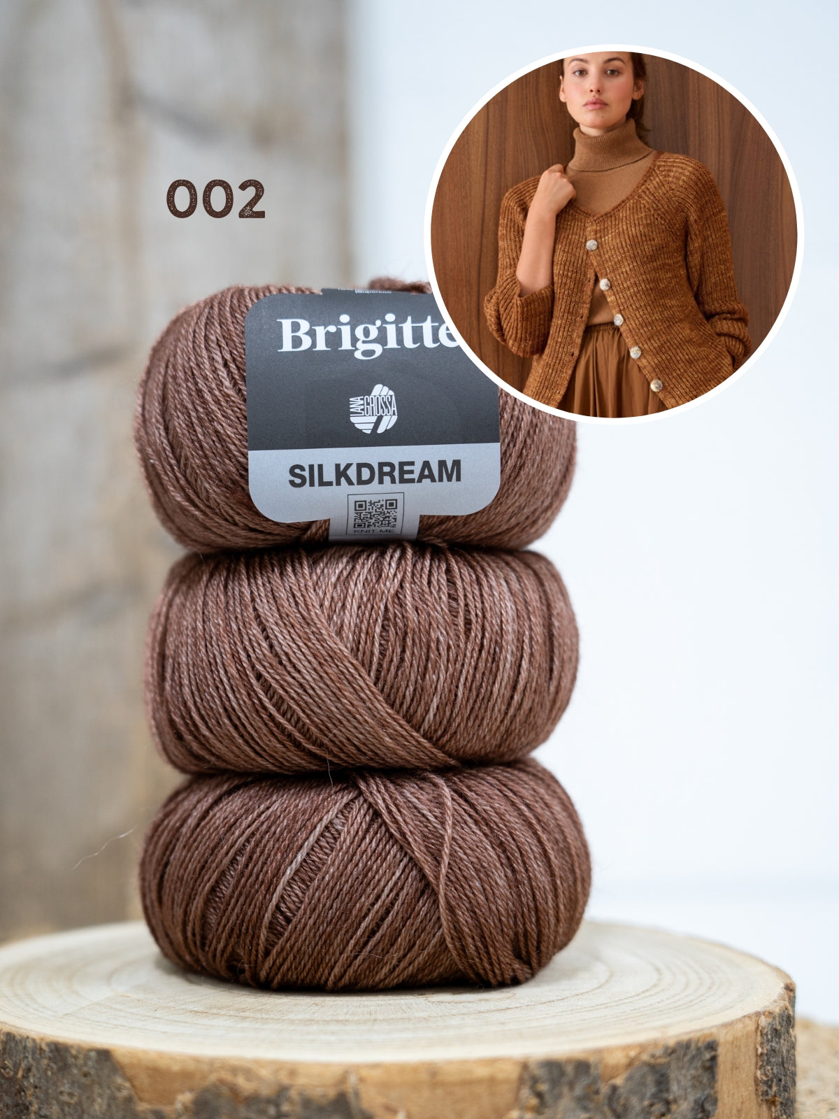 Het breipakket bestaat uit 7/8/9 bollen Brigitte Silkdream en het Classici nr. 29 magazine van Lana Grossa. De benodigde breinaalden (3.5mm, korte naaldpunten 3mm met draad 40cm en een kabelnaald) kun je hieronder toevoegen aan je winkelmandje.