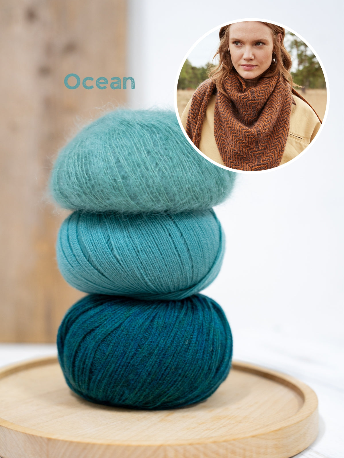 Het pakket bestaat uit 2 bollen Cashmere 16 Fine, 2 bollen Silkhair, 1 bol Cool Wool Lace en het Doeken en Co 9 magazine van Lana Grossa. De benodigde breinaalden (6mm) kun je hieronder aan je winkelmandje toevoegen.