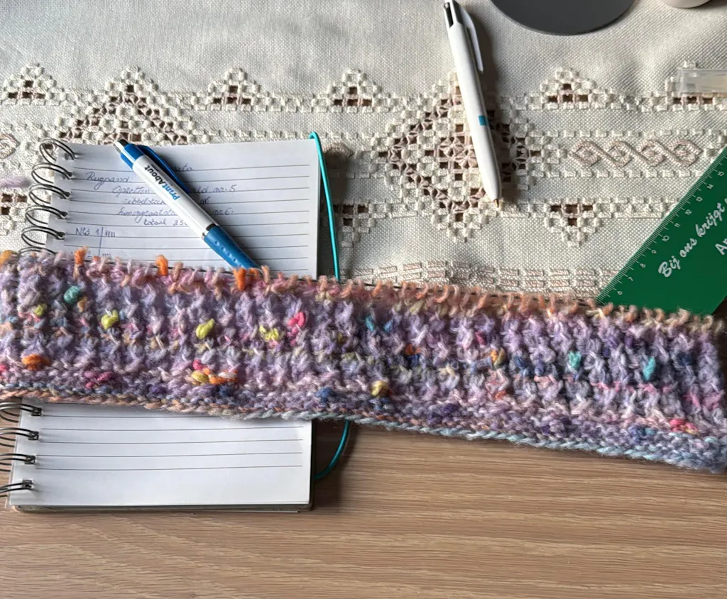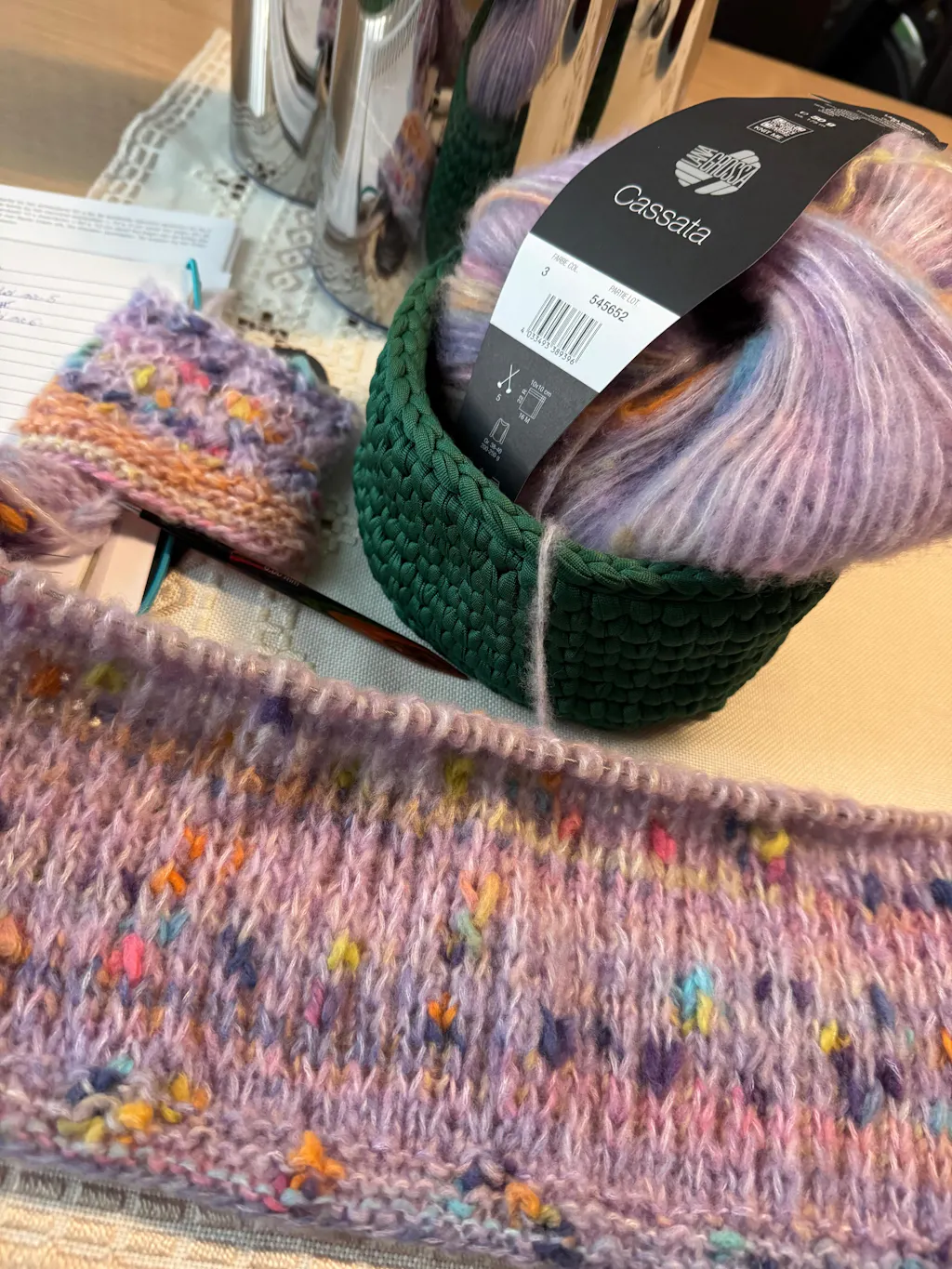De voorgestelde steek honingraatsteek lukte mij niet trok schuin. Heb dan voor een andere steek gekozen die ik reeds gebreid had met Per fortunawol.