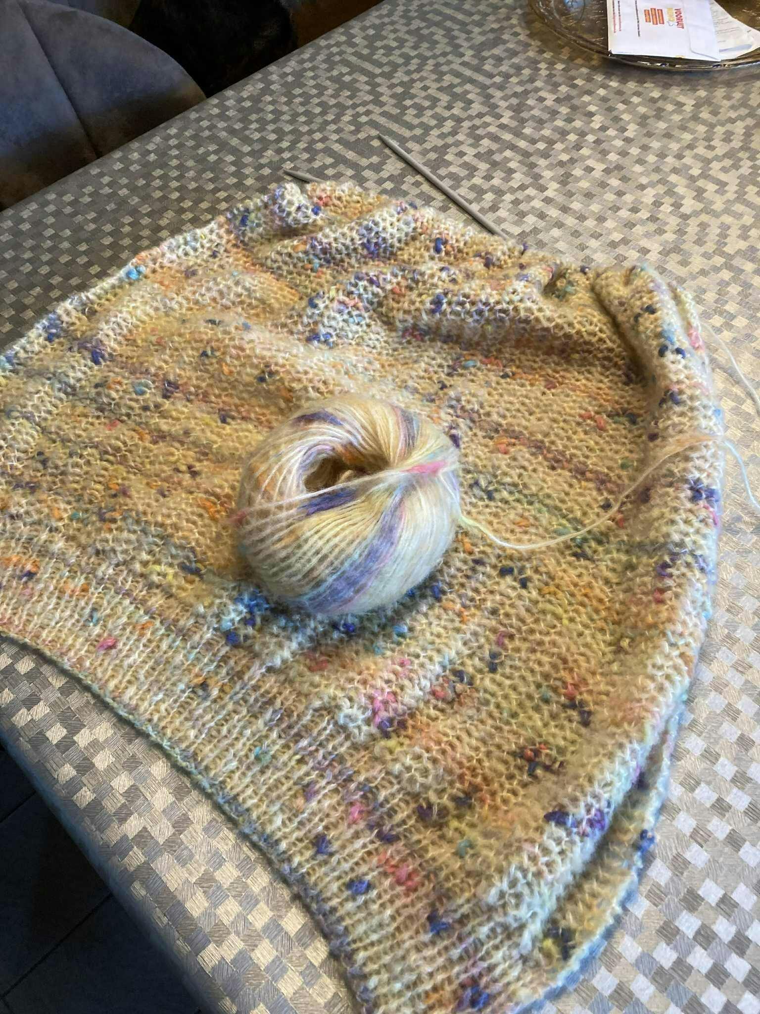 Heel blij met deze wol, wat een prachtige kleuren! Gaat een shawl/stola worden, maar nu nog bezig met een ander project.