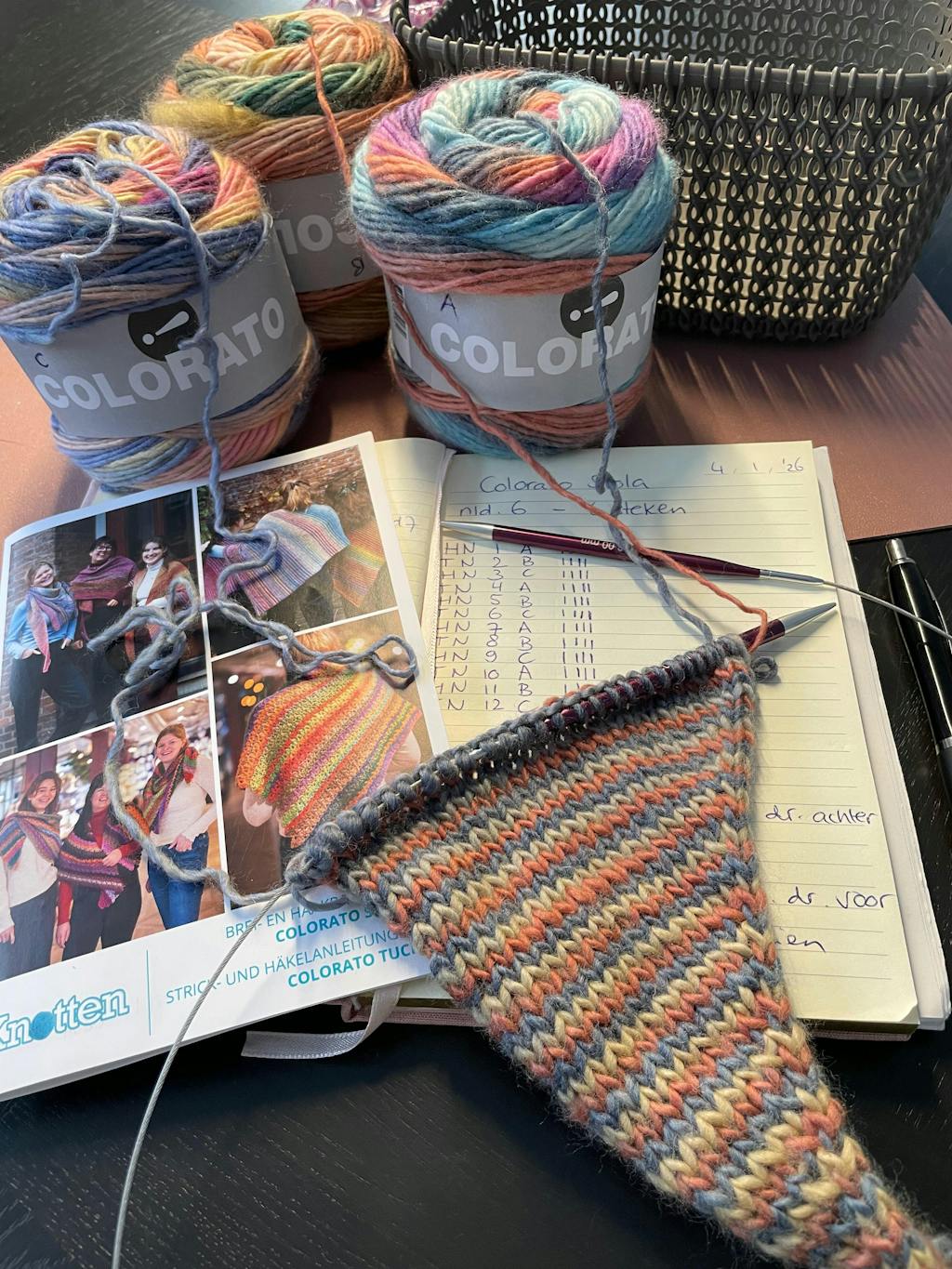 Leuk project voor tussendoor of om te oefenen met rondbreinaalden. Het mooie Colorato garen geeft door de combinatie van 3 verschillende tinten en de subtiele glans een verrassend kleurverloop.