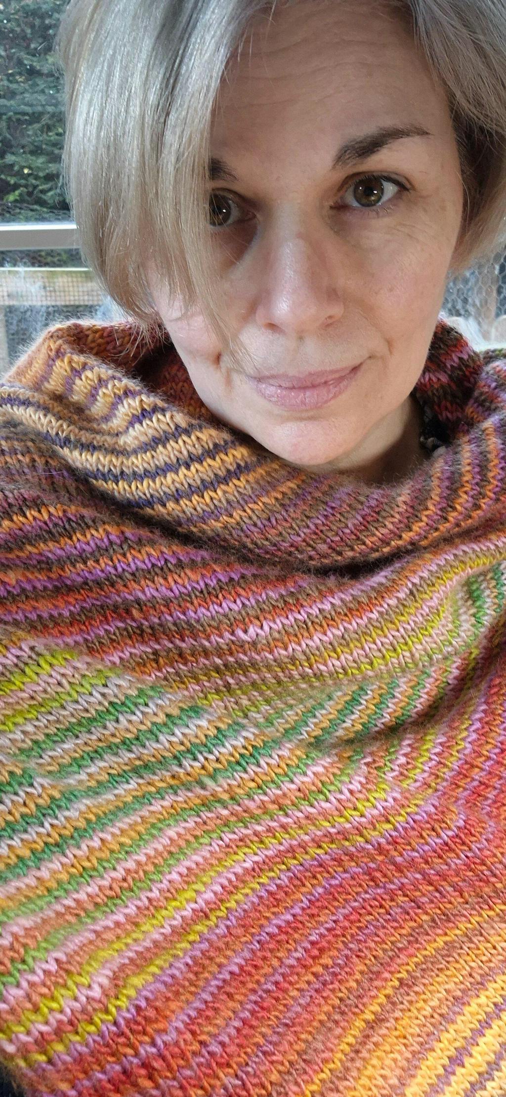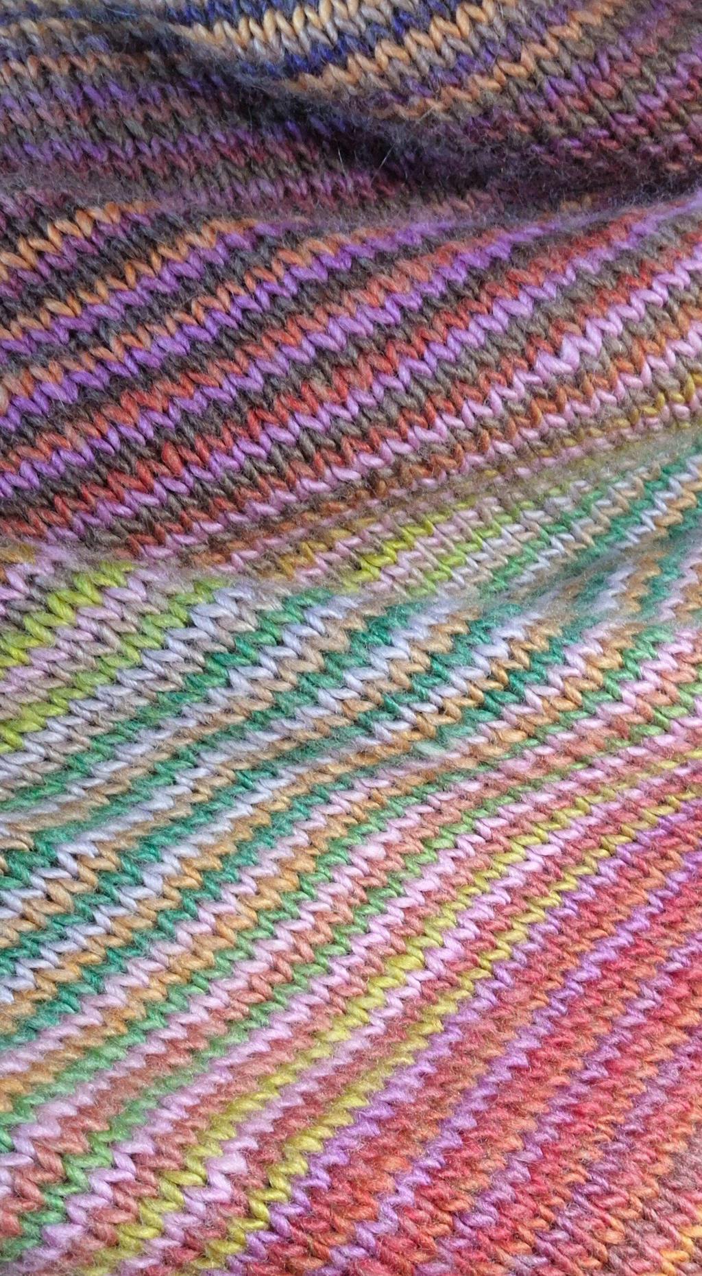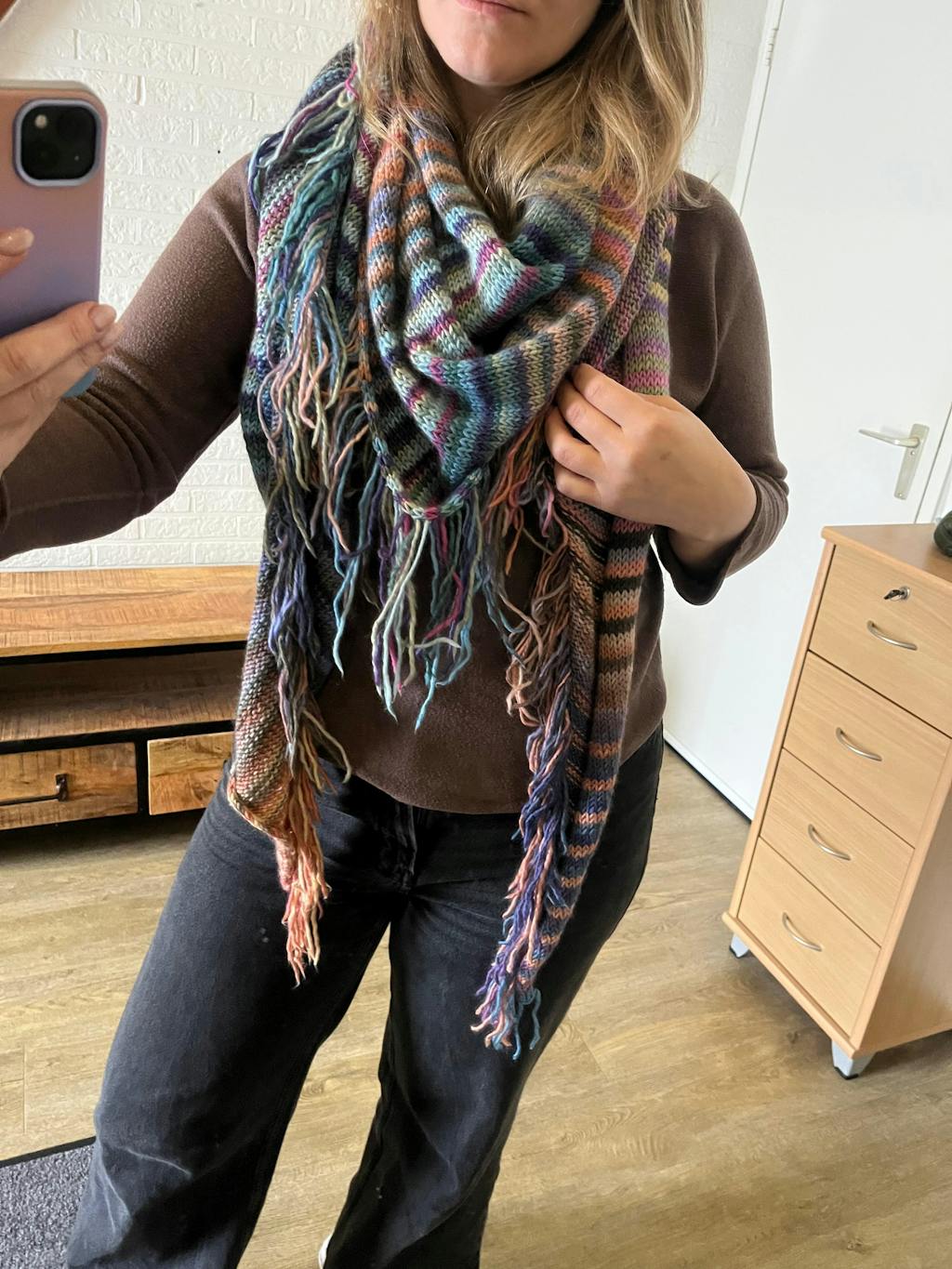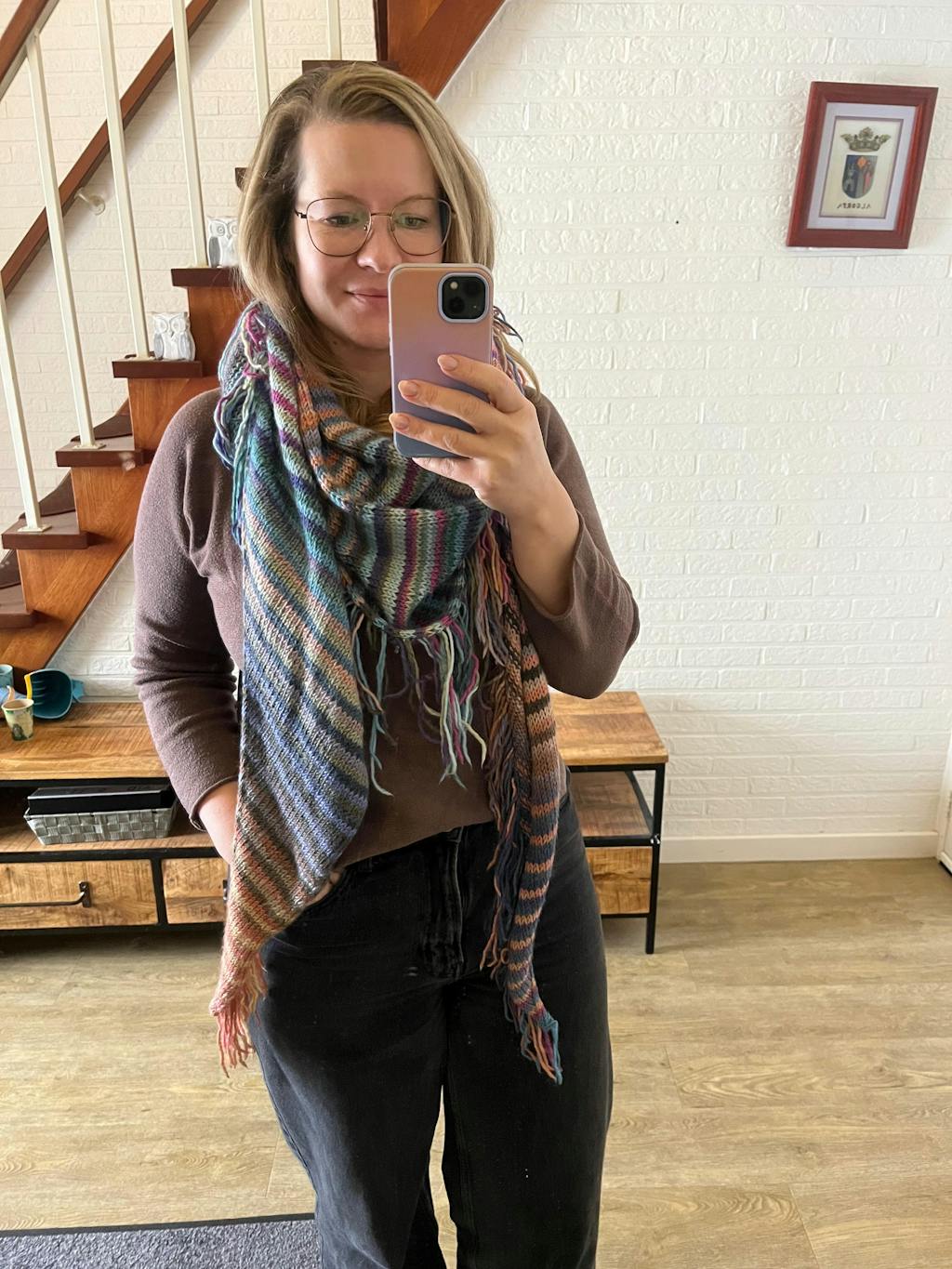 Wat is hij mooi geworden! Zoveel mooie, warme kleuren die door elkaar vloeien. Het patroon is heel simpel, wat ervoor zorgt dat je gewoon rustig kan doorbreien, zonder al te veel denkwerk. Ideaal als rustgevend project om 's avonds bij de tv je handen mee bezig te houden. En het resultaat is zacht en warm. 😍