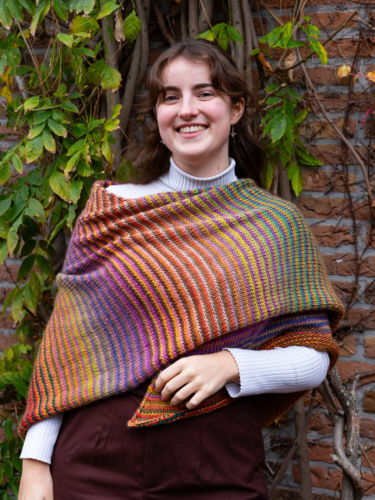 De vrolijke Colorato bollen vroegen erom gemaakt te worden tot een prachtige stola! Je combineert drie verschillende kleuren van dit mooie verloopgaren, wat voor een kleurrijke stola zorgt.