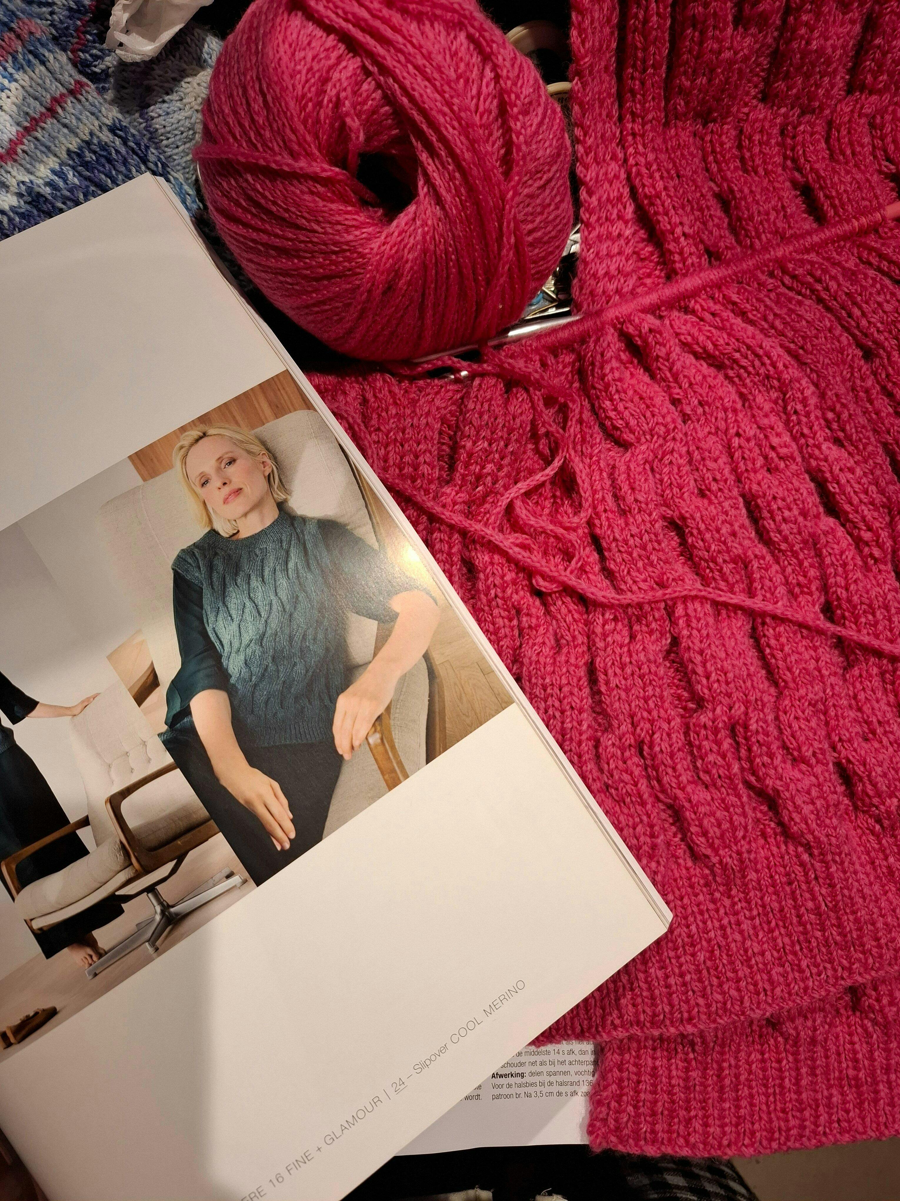 Hij is af, op 2 weken tijd! Heb wel de grootste maat moeten nemen, terwijl ik normaal de kleinste maat nodig heb. De mouwen heb ik iets korter moeten maken. Hij zit perfect, lekker warm en zacht.