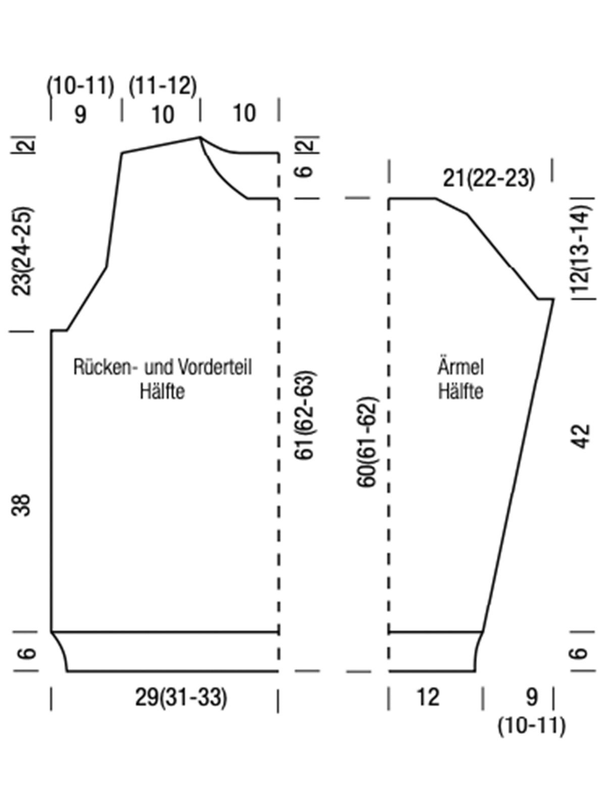 De trui wordt gebreid met Cool Wool (100% merinowol) en Silkhair (70% kidsilk mohair, 30% zijde). Het patroon is uitgeschreven in maat 48 t/m 56.