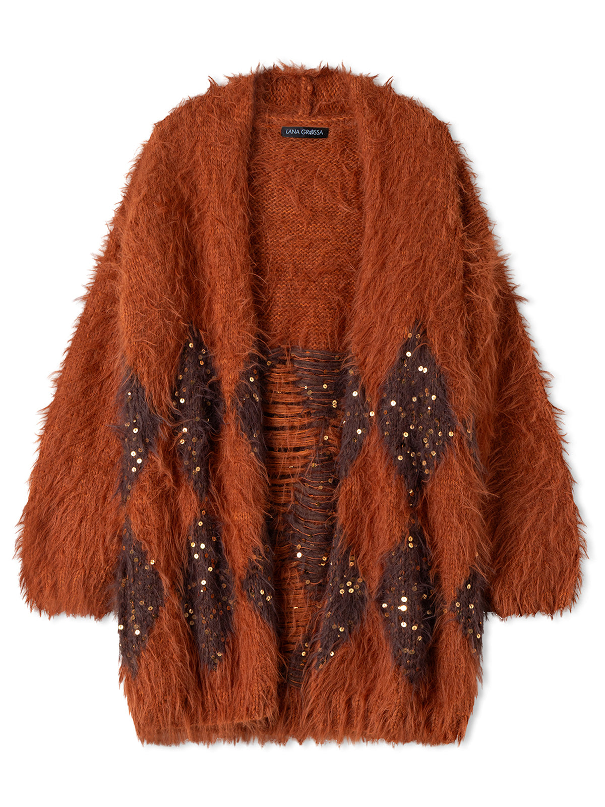 Dit vest is niet alleen erg knus, ook stijlvol met ingebreide delen met pailetten! De kleur die je niet gebruikt neem je aan de achterkant van het werk losjes mee. Het vest wordt in panden gebreid, tijdens het breien houd je altijd twee draden samen (Basta + Ecopuno of Basta + Cosmo).