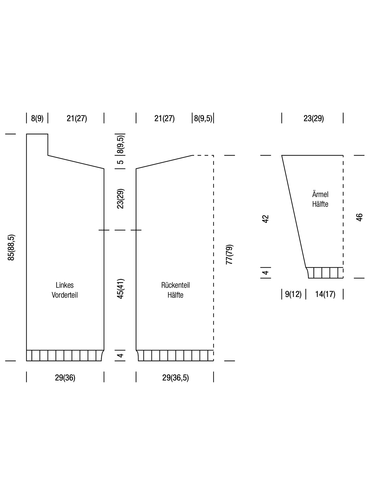 Het vest wordt gebreid met Ecopuno (72% katoen, 17% wol, 11% Alpaca), Basta (50% wol en 50% polyamide) en Cosmo (100% katoen plus pailletten). Het patroon is uitgeschreven in maat 36 t/m 52.