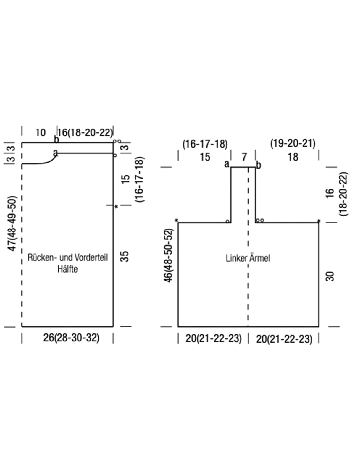 Dit is een prachtige trui die in patentsteek wordt gebreid en heeft driekwart mouwen. De trui wordt in panden gebreid met 2 verschillende draden samen. Wanneer de panden aan elkaar genaaid zijn brei je de halsboord eraan op korte rondbreinaalden.