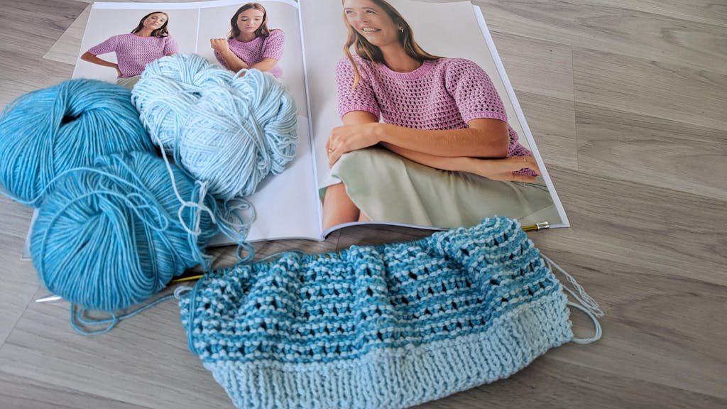 Wat een mooi shirt! Dit model wordt met twee garens gebreid in een leuk gaatjespatroon.