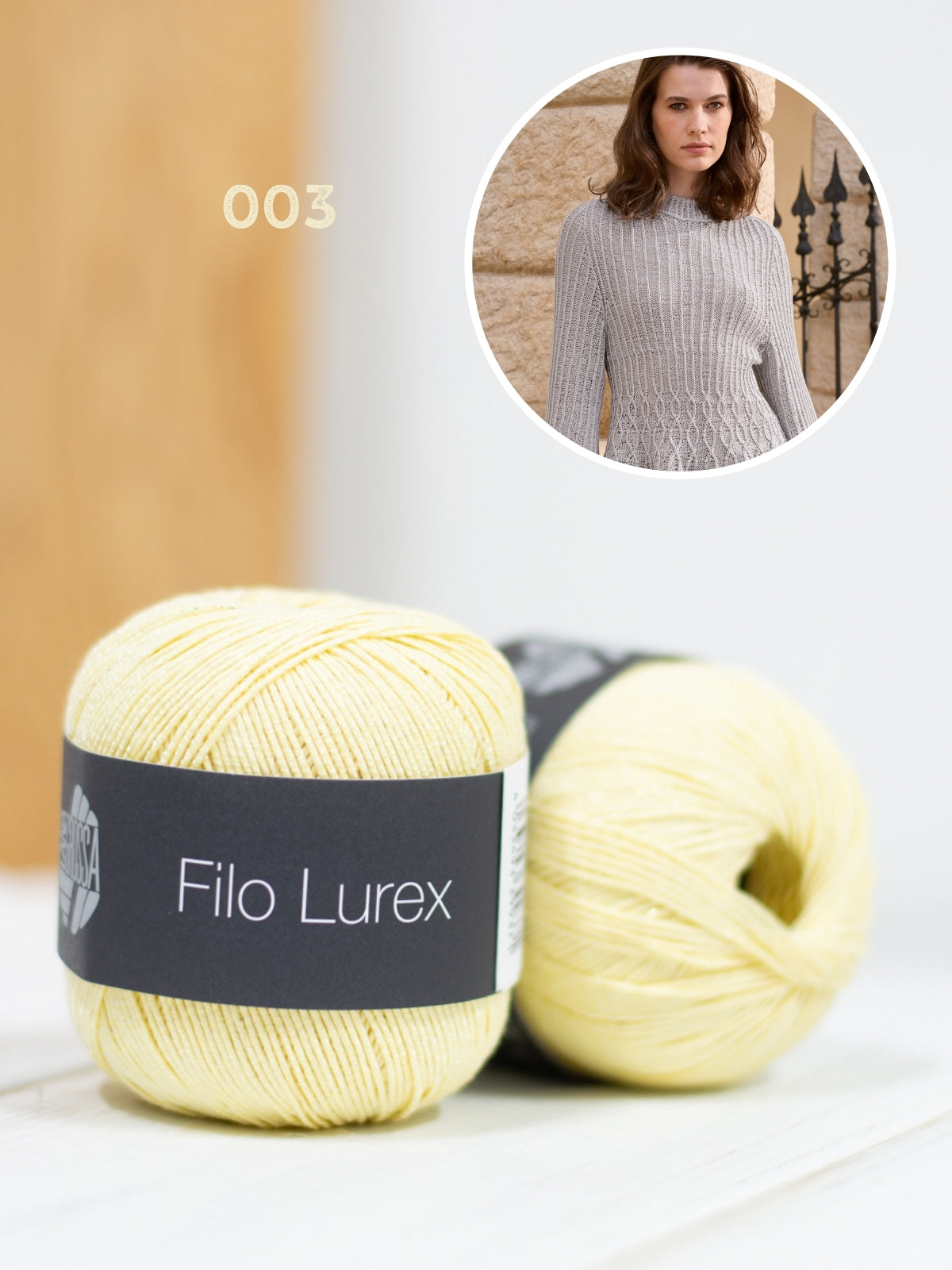 De trui wordt gebreid met Filo Lurex, dit garen bestaat uit 94% katoen en 6% polyester. Het patroon is uitgeschreven in maat 36/38.