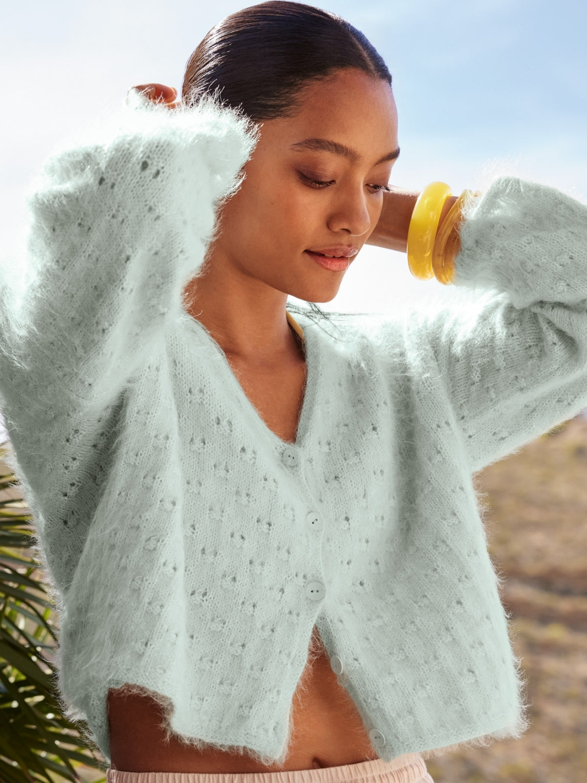 Prachtig garen met glitter voor een toch wel beetje moeilijke cardigan. Valt zeer ruim, heb de mouwen wat korter gemaakt. Ben er blij mee.