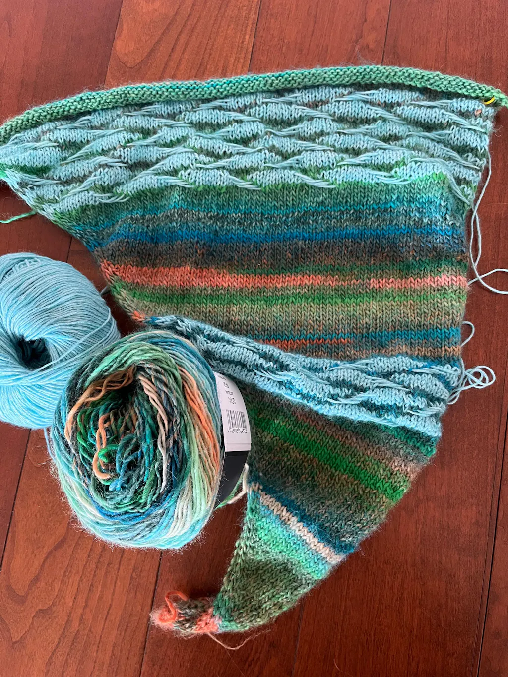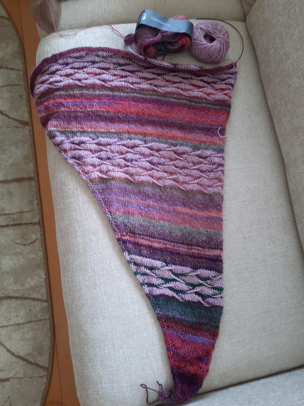 Deze stola van ontwerpster Liza van Liza’s Laden is echt een feestje om te maken. Mooie kleuren en lekkere licht materiaal om mee te breien, na al die winterse breisels. Het pakket was snel binnen en ik ben al een aardig stukje op streek. Het patroon is heel goed te lezen, alleen ontbreekt er in mijn Nederlandse versie een stukje tekst op pagina 6. Ik heb dat al doorgegeven. Tip: als dat bij een ander ook zo is; gebruik dan de tekst voor dat gedeelte uit de Duitse tekst die is namelijk wel compleet en is ook heel goed te begrijpen. Verder alleen maar lof!