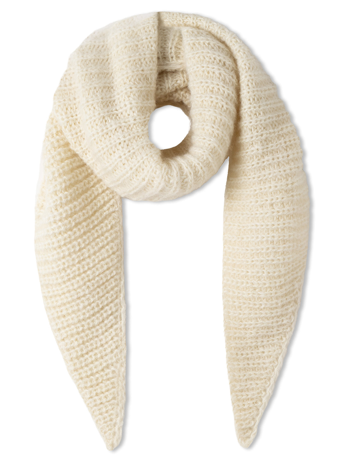 Deze sjaal houd je nek heerlijk warm op koude dagen. Je begint met breien in de onderste punt en meerdert aan de zijkanten om een driehoek te maken. De volledige stola is in halve patentsteek gebreid.