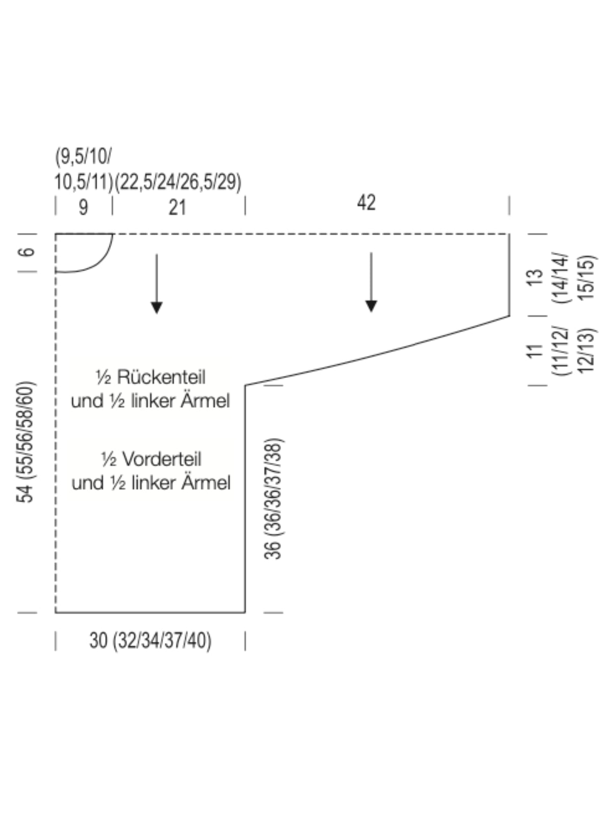 Deze trui brei je van boven naar beneden, door eerst alle steken op te zetten van beide mouwen en het rugpand. Later haal je steken van de mouwen af en brei je het rugpand af. Vervolgens neem je steken op voor het voorpand. Aan het einde naai je de zijkanten van het lijf en de onderkant van de mouwen. Vervolgens zet je op een korte rondbreinaald steken op voor de hals.