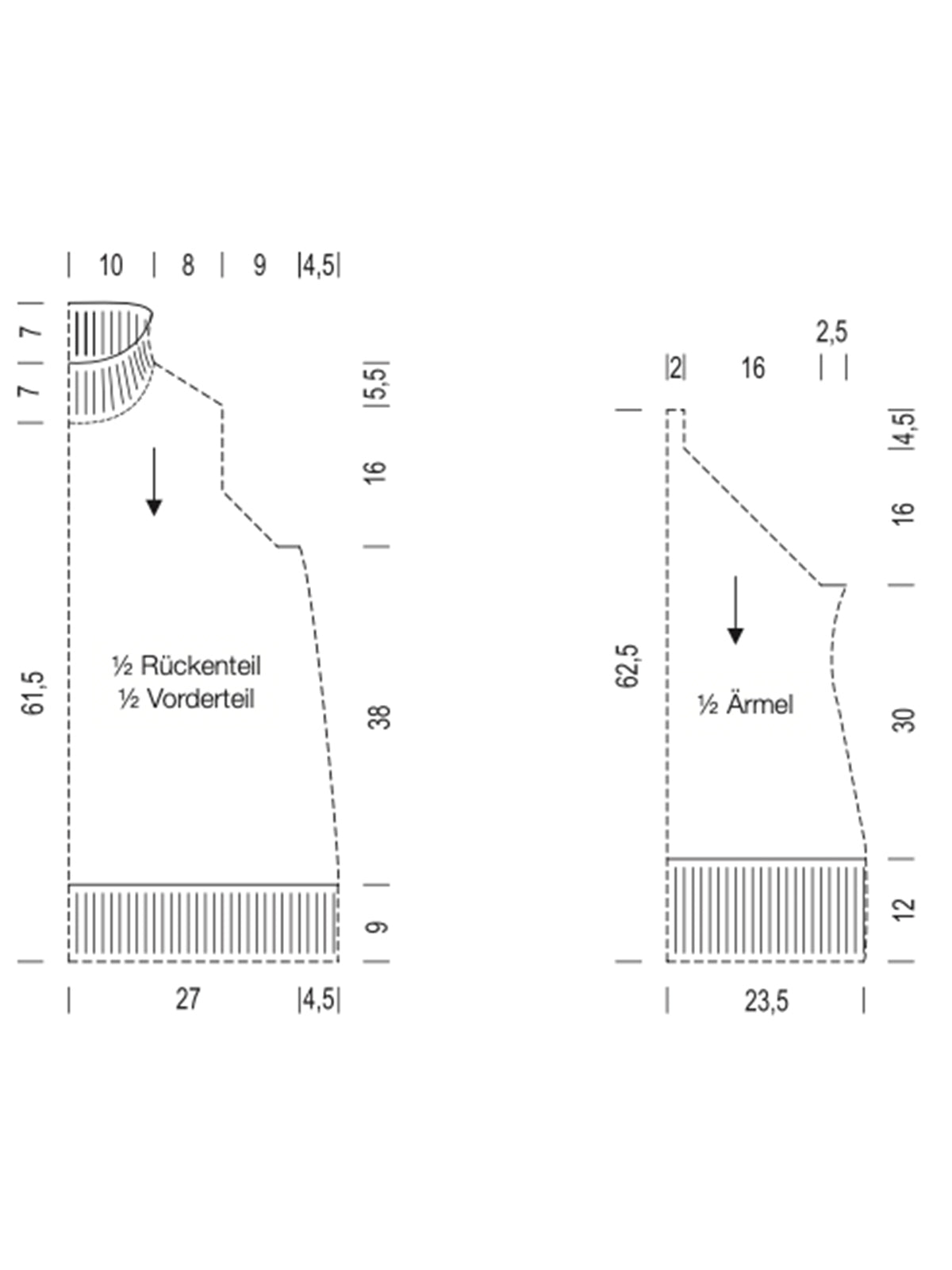 Deze trui heeft een prachtig slipsteekpatroon in het lijf en wijd uitlopende mouwen. De trui wordt naadloos van boven naar beneden in het rond gebreid.