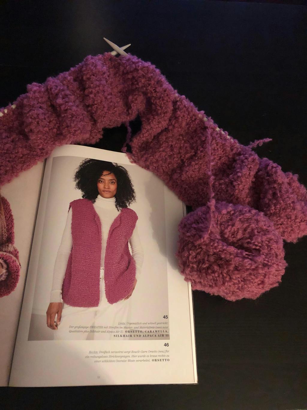 Angelina D. Eenvoudig en snel breien, en toch een bijzonder gilet door de bouclé wol. Dit gilet ga ik vaak dragen wanneer het af is.