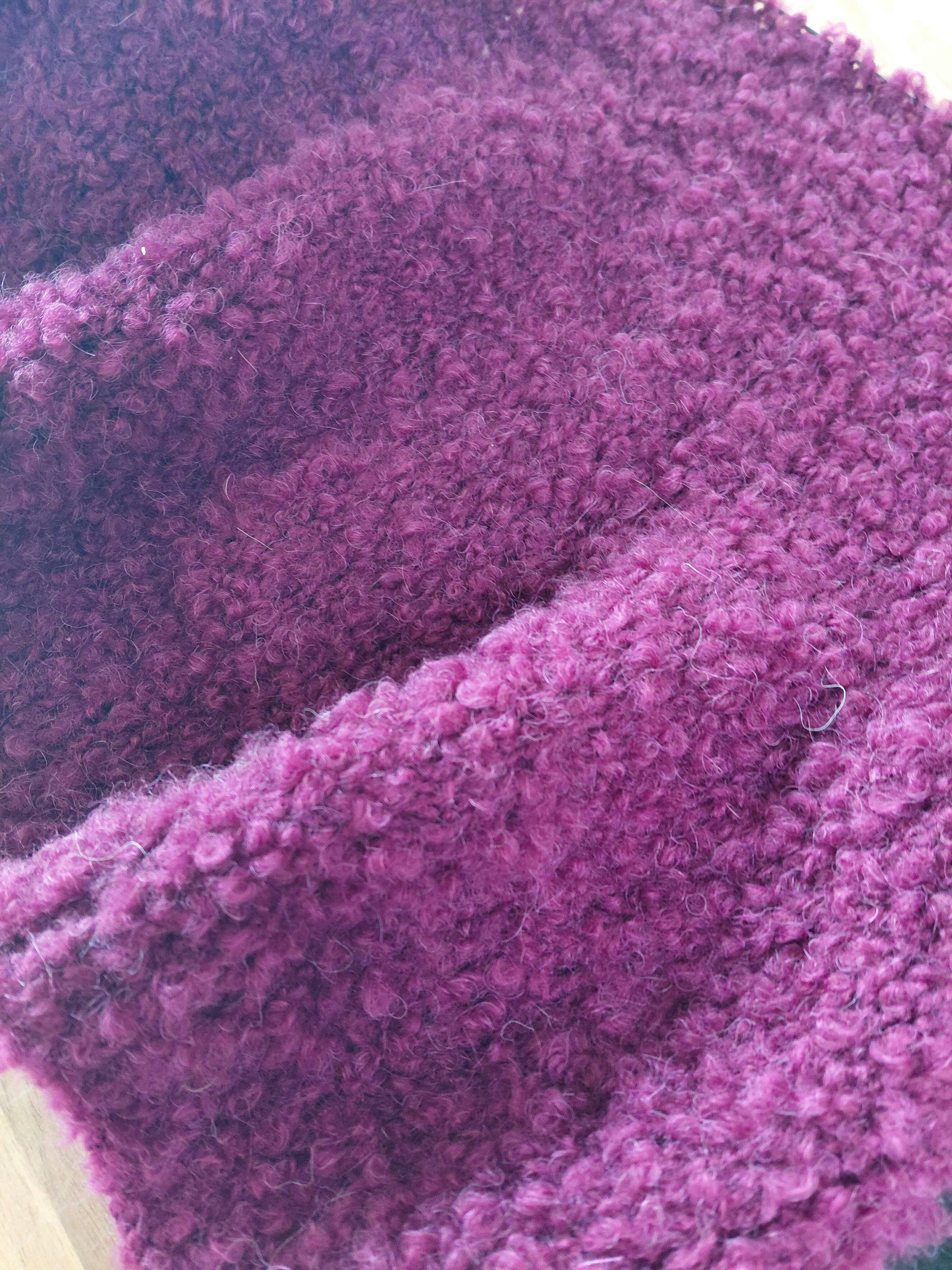 Dit is een heerlijk, knus vest! Het vest wordt met tricot in panden gebreid, het bouclé garen maakt de prachtige textuur zelf! Wanneer het vest in elkaar is gezet wordt de hals er met rondbreinaalden aan vast gebreid.