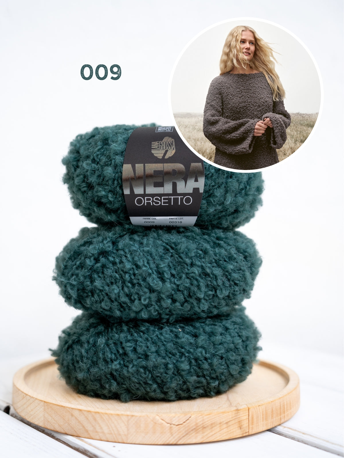 Het pakket bestaat uit 9/10/11/12 bollen Orsetto en het Nordic Knits 4 magazine van Lana Grossa. De benodigde breinaalden (naaldpunten 5mm en 7mm met draad 60cm, 80cm en/of 100cm, sokkennaalden 5mm en 7mm en eventueel steekmarkeerders) kun je hieronder toevoegen aan je winkelmandje.