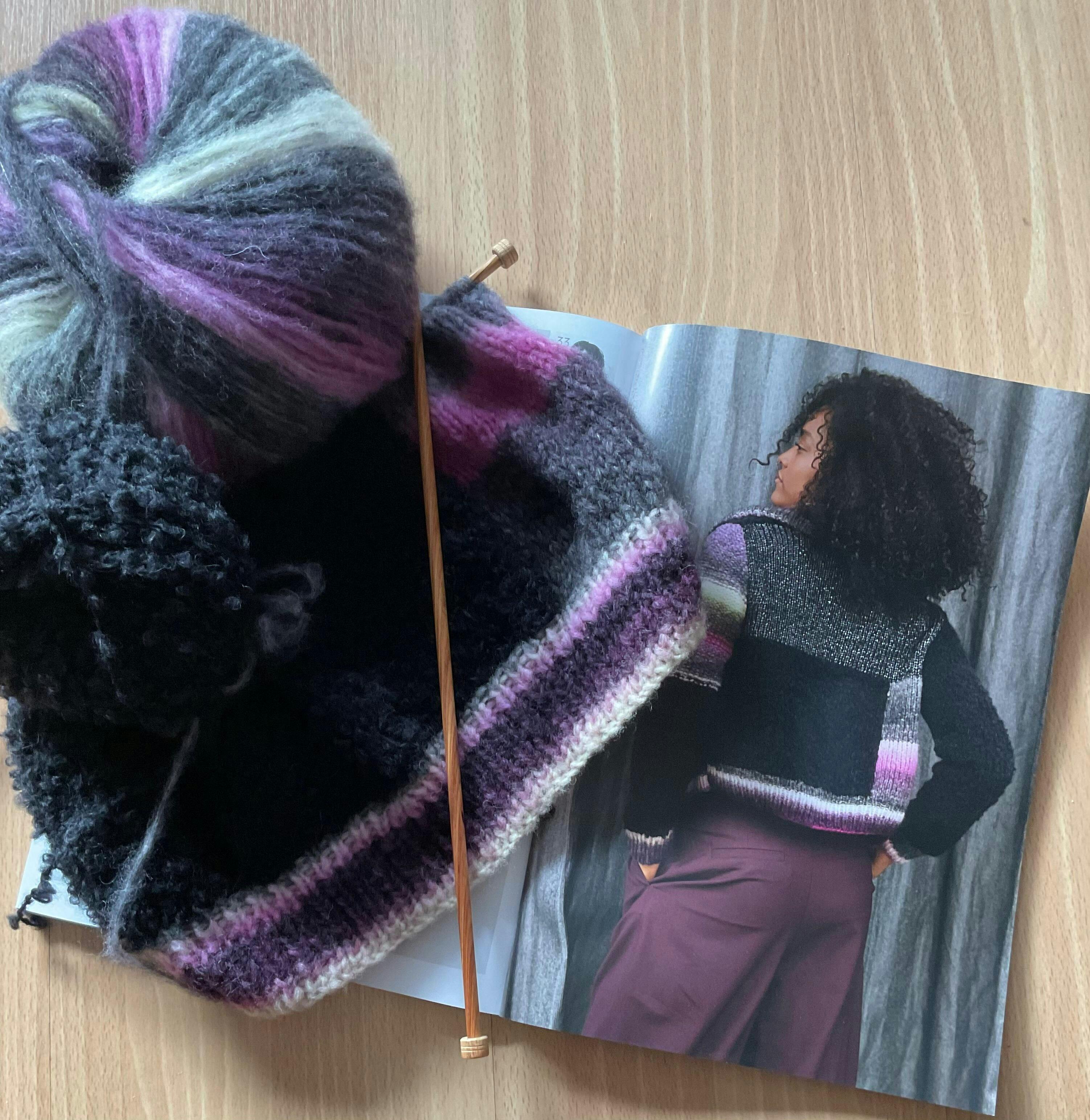 Angelique Ik ben nog niet begonnen aan het vest maar de wol is prachtig , leuke match van materialen en kleuren.