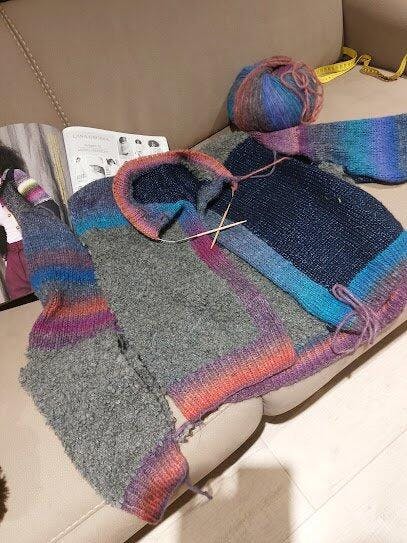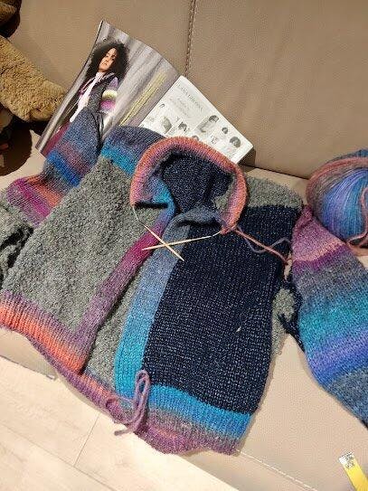 Carla Dit vest is onwijs leuk om te maken, juist door de verschillende materialen. Het ziet er nu al heel mooi uit…🥰