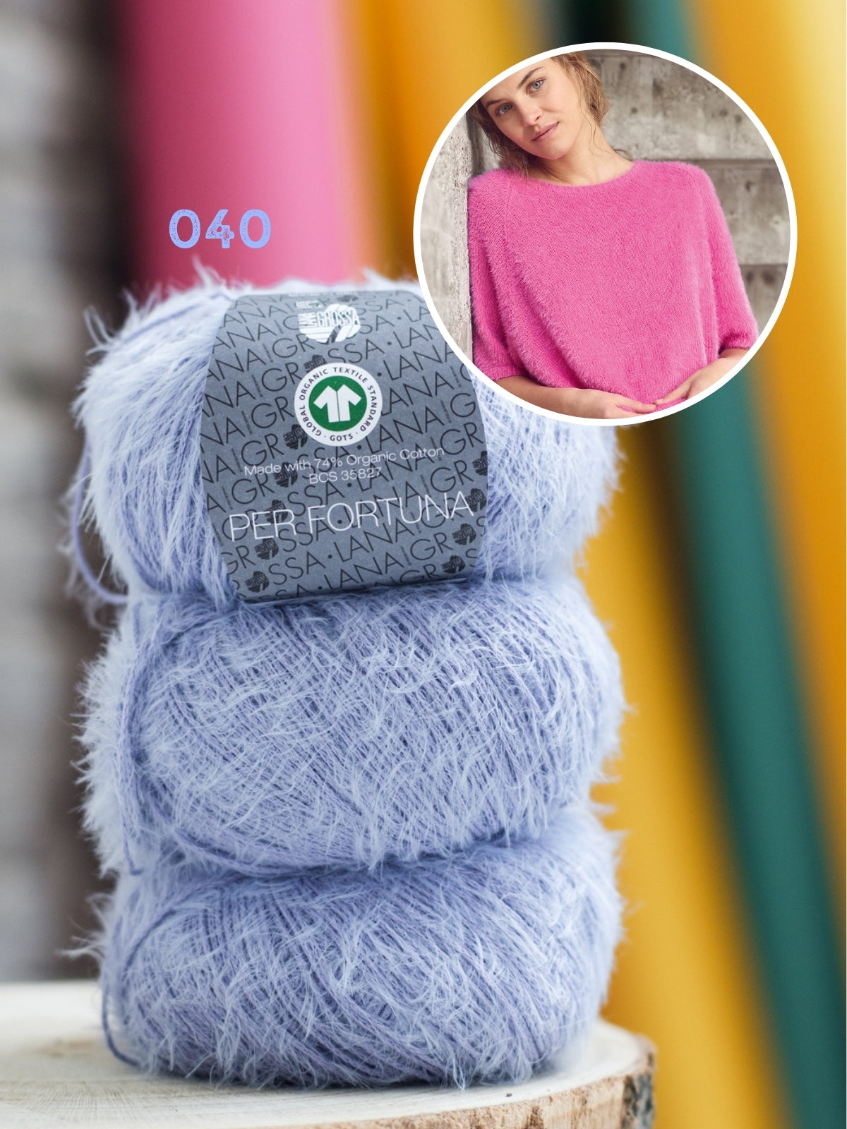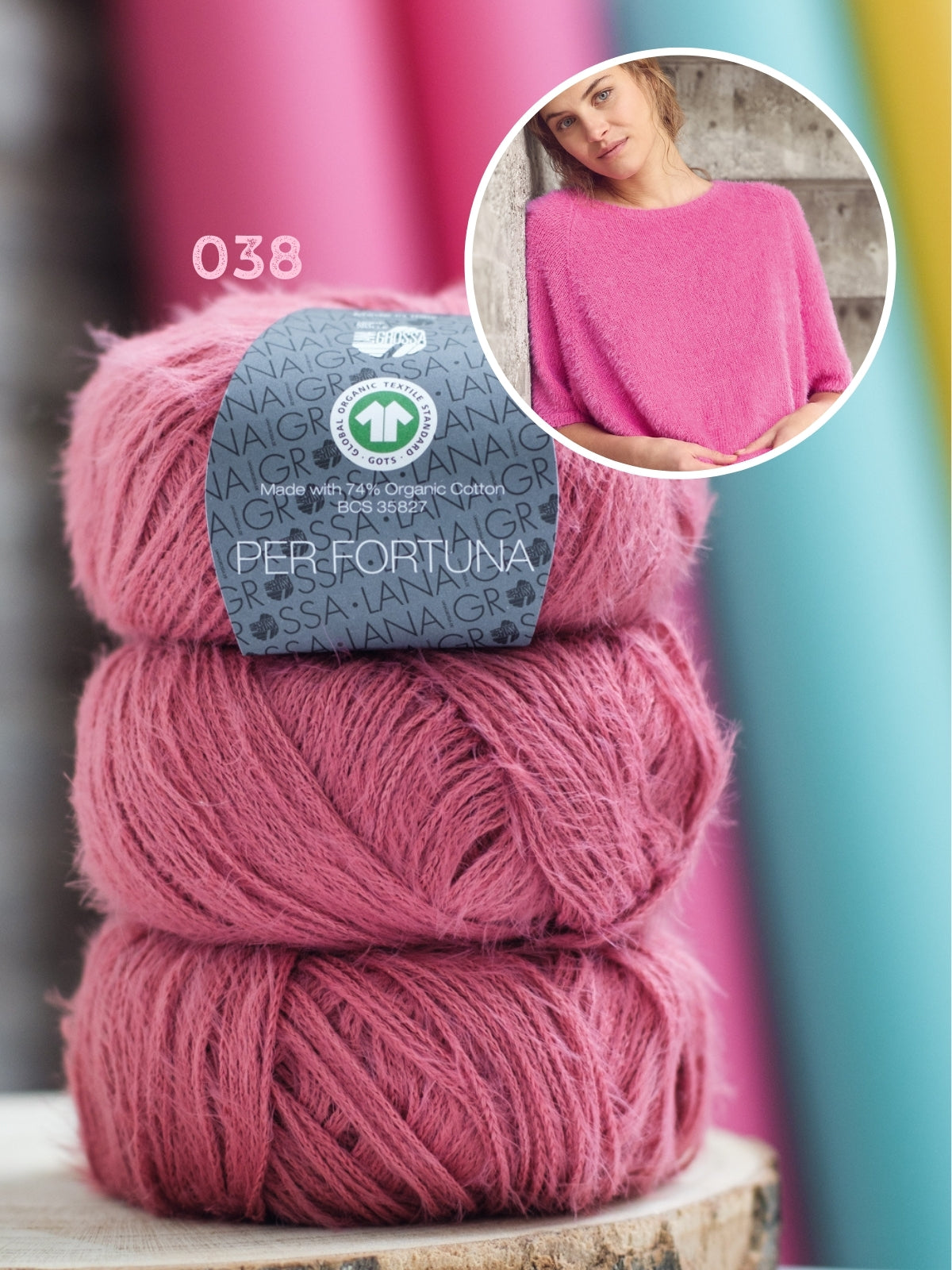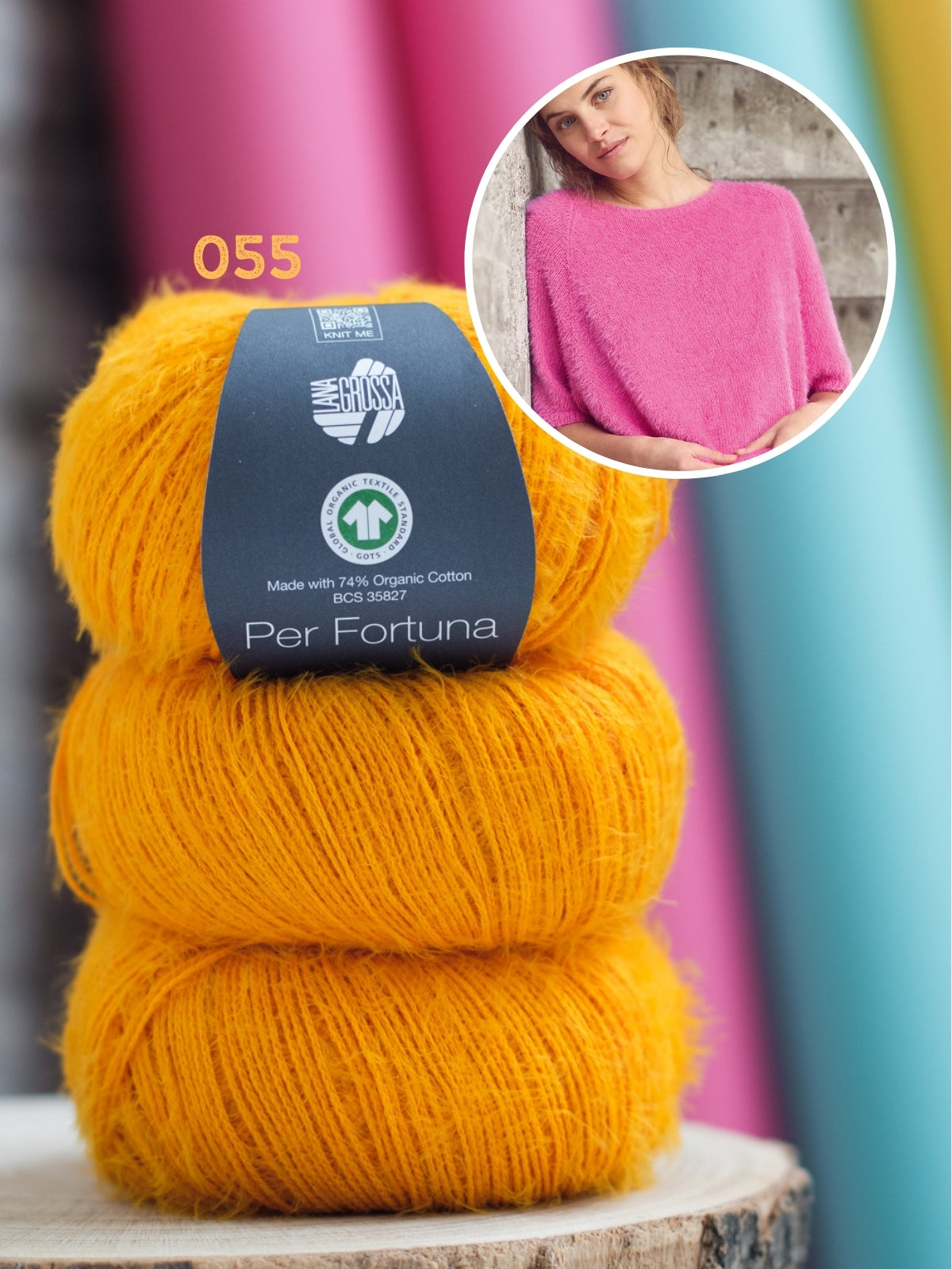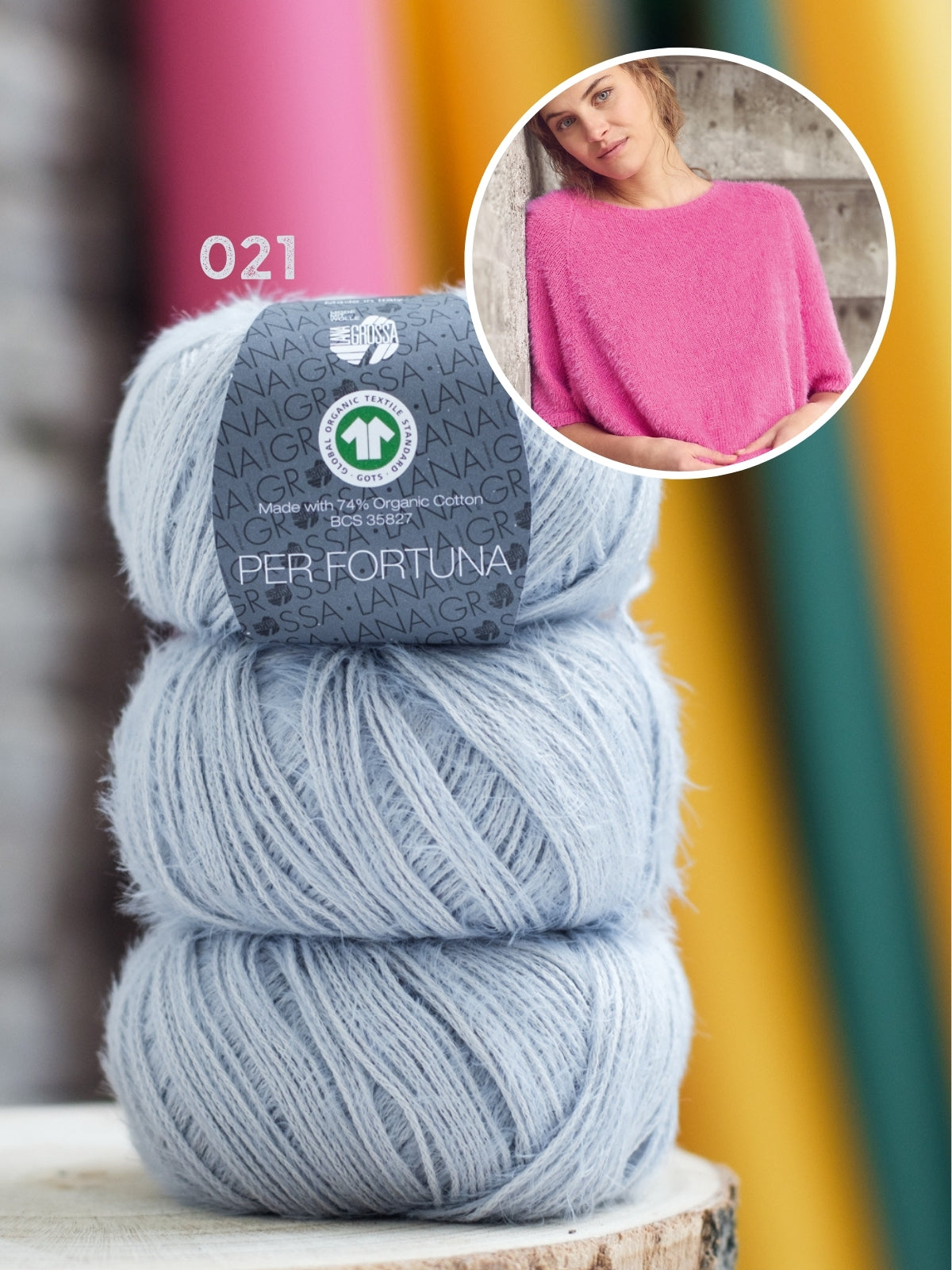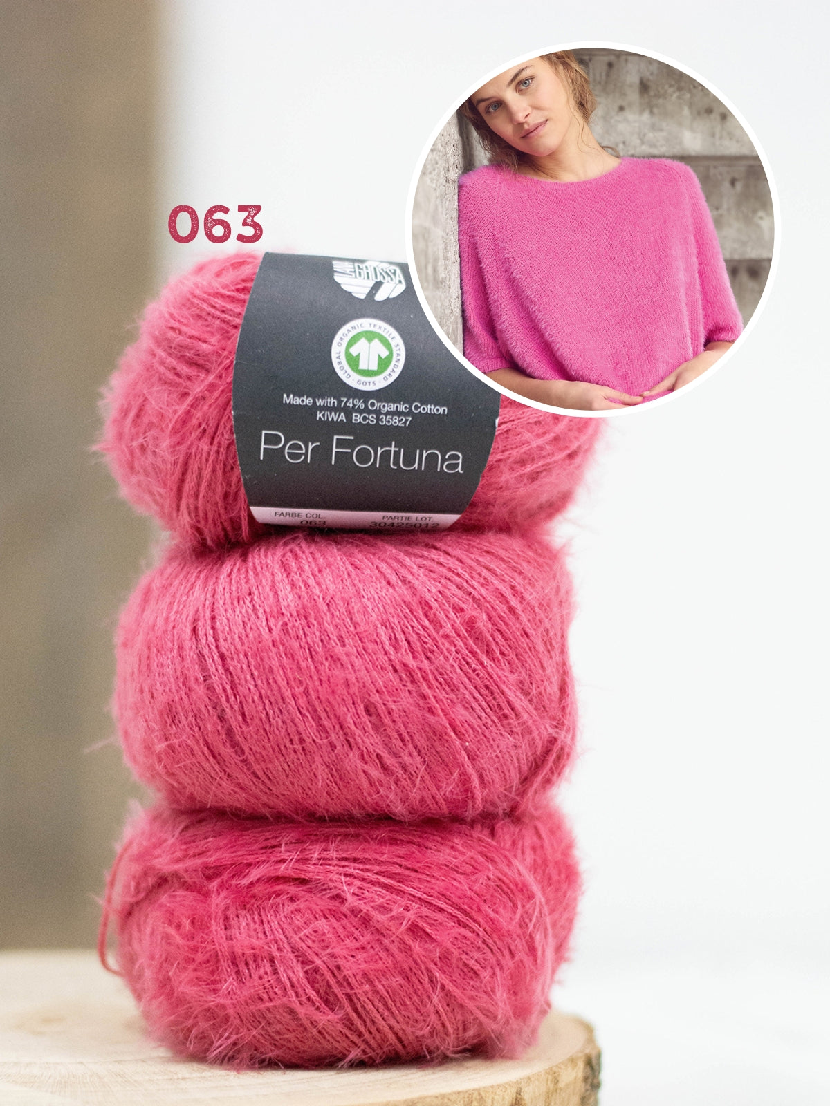 Het shirt wordt gebreid met Per Fortuna, dit garen bestaat uit 74% bio katoen, 26% polyamide. Het patroon is uitgeschreven in maat 36 t/m 50.