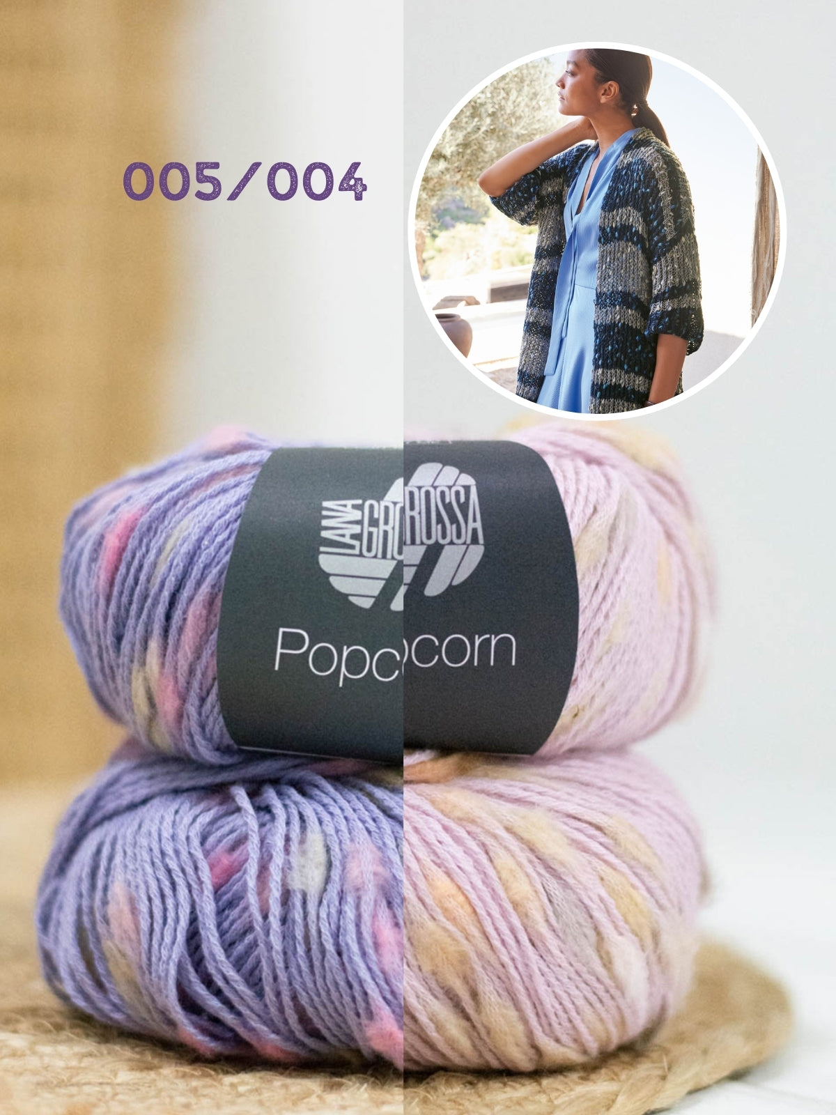 Het pakket bestaat uit 10/12 bollen Popcorn in 2 verschillende kleuren en het Filati Journal 71 magazine van Lana Grossa. De benodigde naalden (naaldpunten 4mm en 5.5mm met draad 60cm en 100cm en een sokkennaalden 4mm en 5.5mm en eventueel steekmarkeerders) kun je hieronder toevoegen aan je winkelmandje.