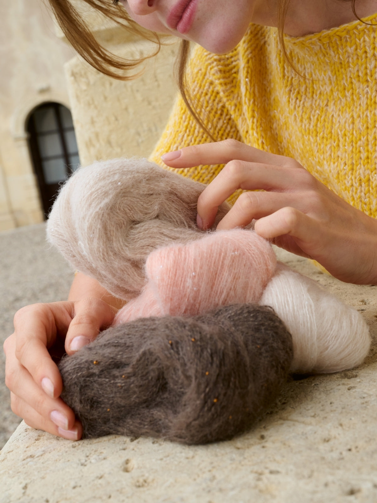 De trui wordt gebreid met Summer Softness (80% bio katoen, 20% merinowol) en Setasuri Pearls (50% suri alpaca, 22% zijde, 16% katoen en 12% glas). Het patroon is uitgeschreven in maat 36 t/m 50.