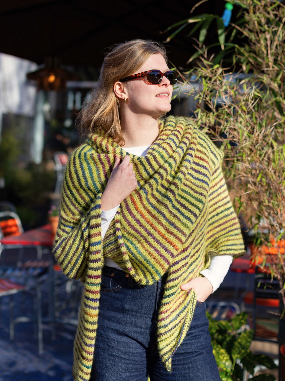 Een heerlijk royale én super zachte XXL stola, dat willen we toch allemaal? Deze fijne omslagdoek is extra groot om helemaal in weg te kunnen kruipen. De kleuren van de twee garens verschijnen als een waar feestje tijdens het breien. Door de combinatie van Alpaca en Merino is de stola super zacht en valt hij soepel om je heen, zonder zwaar te zijn.