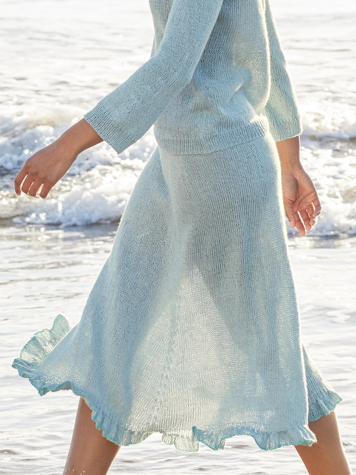 De rok wordt gebreid met Tencellino (51% linnen, 49% tencel) en Filo Paillettes (55% katoen, 39% polyester, 6% polyamide). Het patroon is uitgeschreven in maat 36 t/m 46.