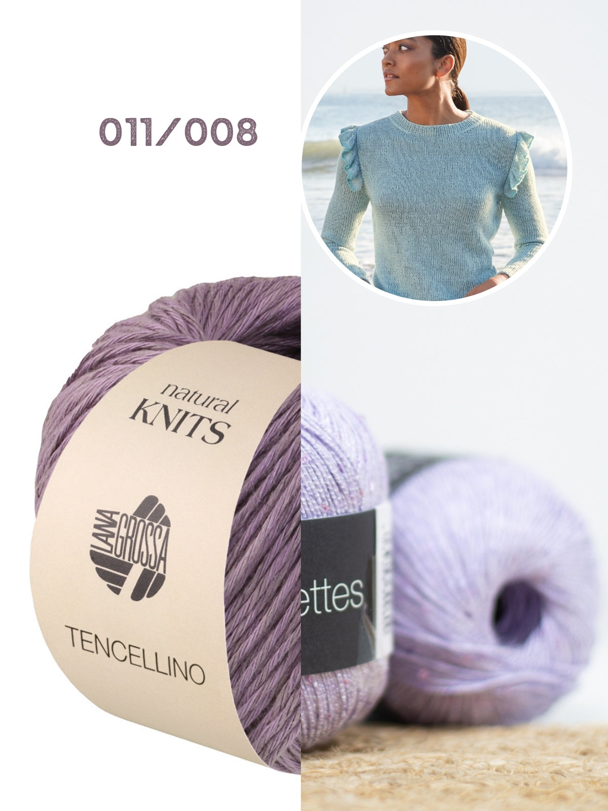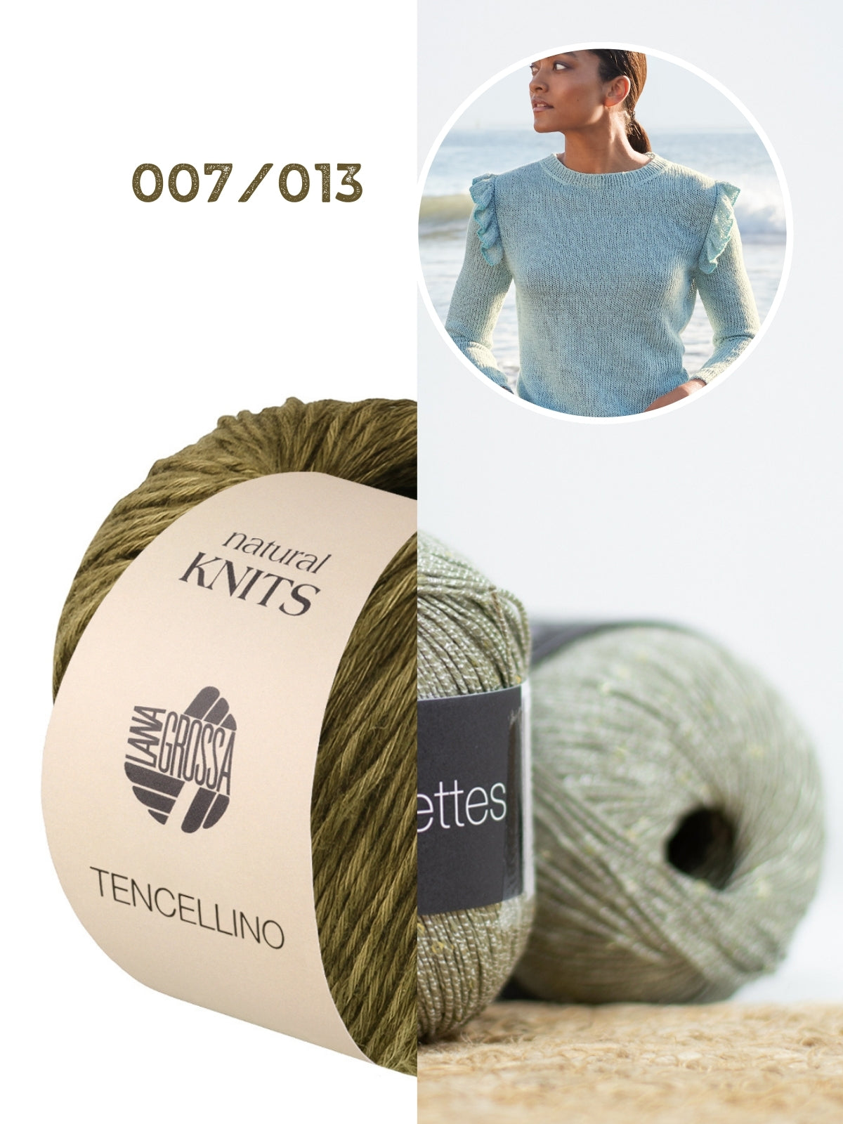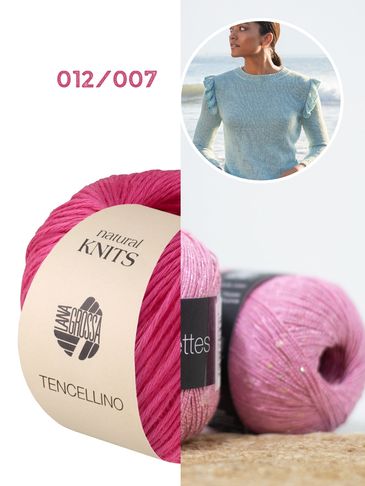 Het pakket bestaat uit 7/8/9 bollen Tencellino, 1 bol Filo Paillettes en het Filati Journal 71 magazine van Lana Grossa. De benodigde naalden (breinaalden 5mm, korte naaldpunten 5mm met draad 40 cm) kun je hieronder toevoegen aan je winkelmandje.