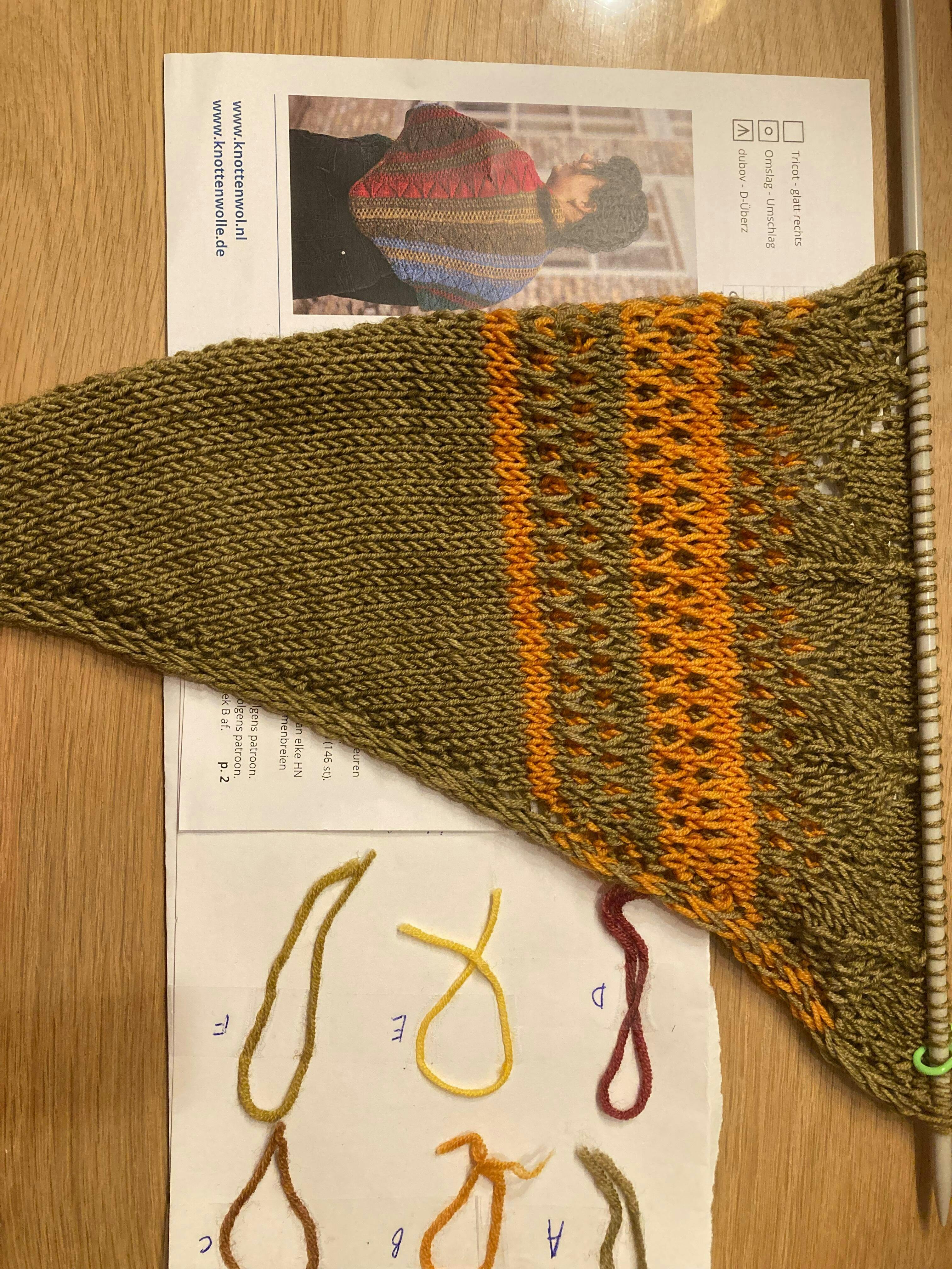 Bij de overschakeling naar het minderen bij het slibsteekpatroon heb ik wel 1re weggelaten anders verspringt het patroon niet.