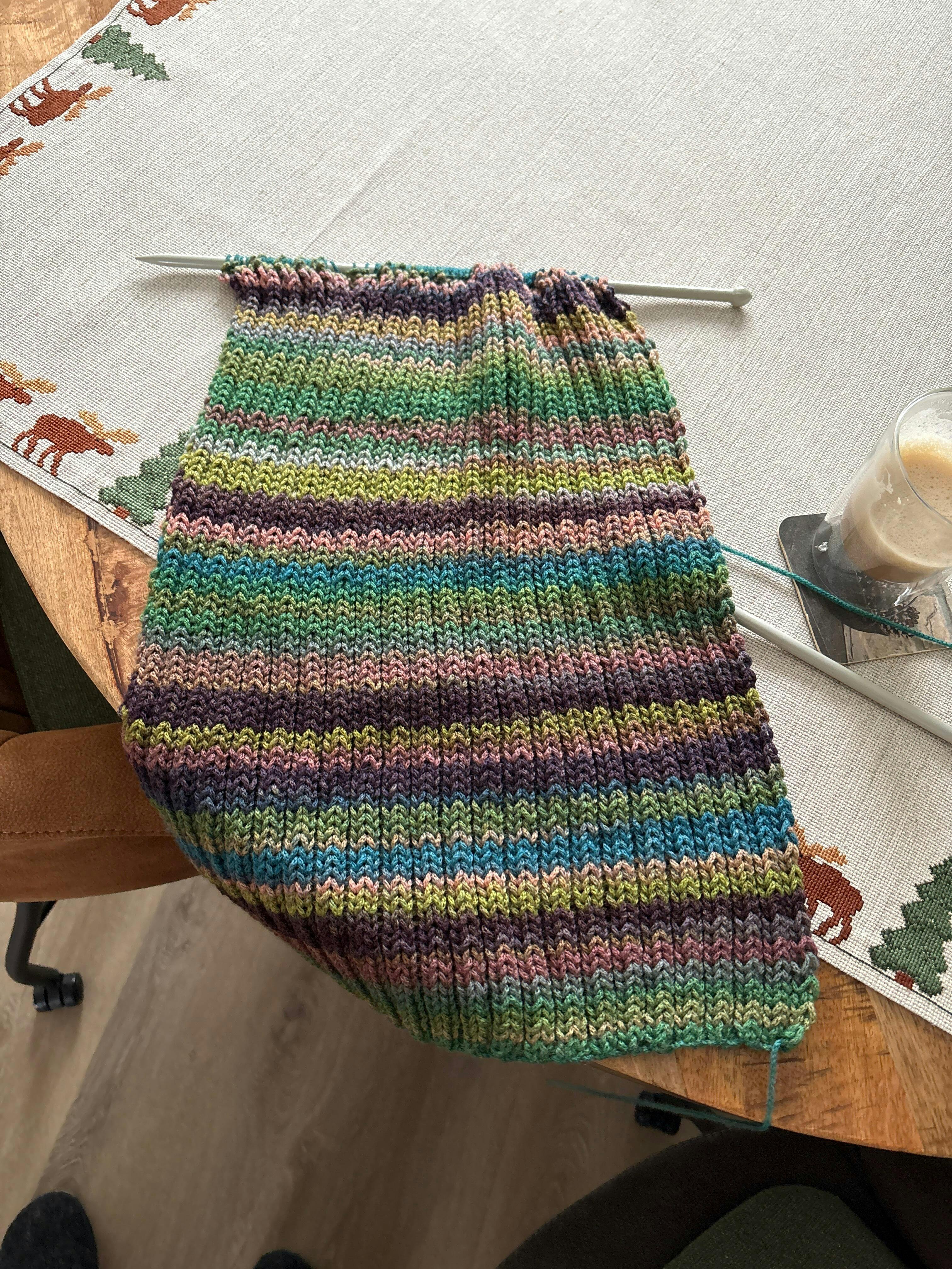 Een warm wolletje dat is uitgevoerd in vrolijke kleurverlopen.