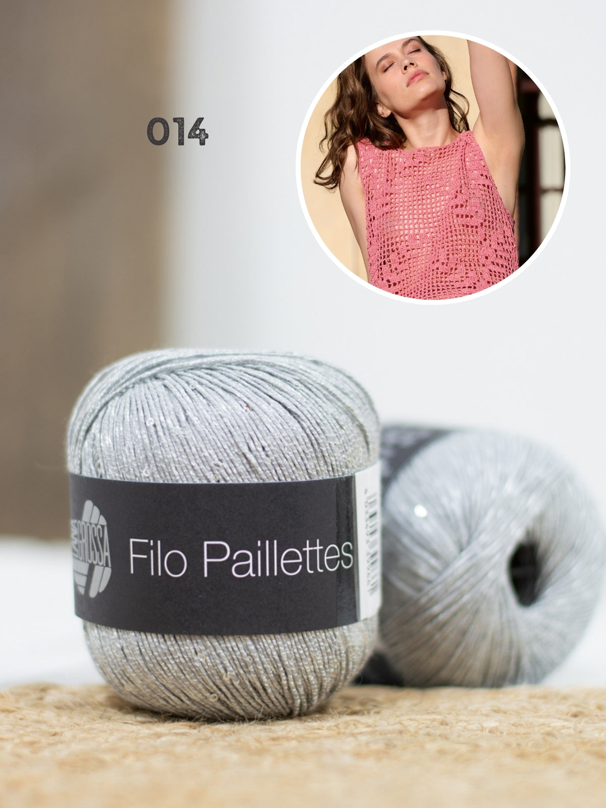 De top wordt gehaakt met Filo Pailettes, dit garen bestaat uit 55% polyester, 39% katoen en 6% polyamide. Het patroon is uitgeschreven in maat 36 t/m 50.