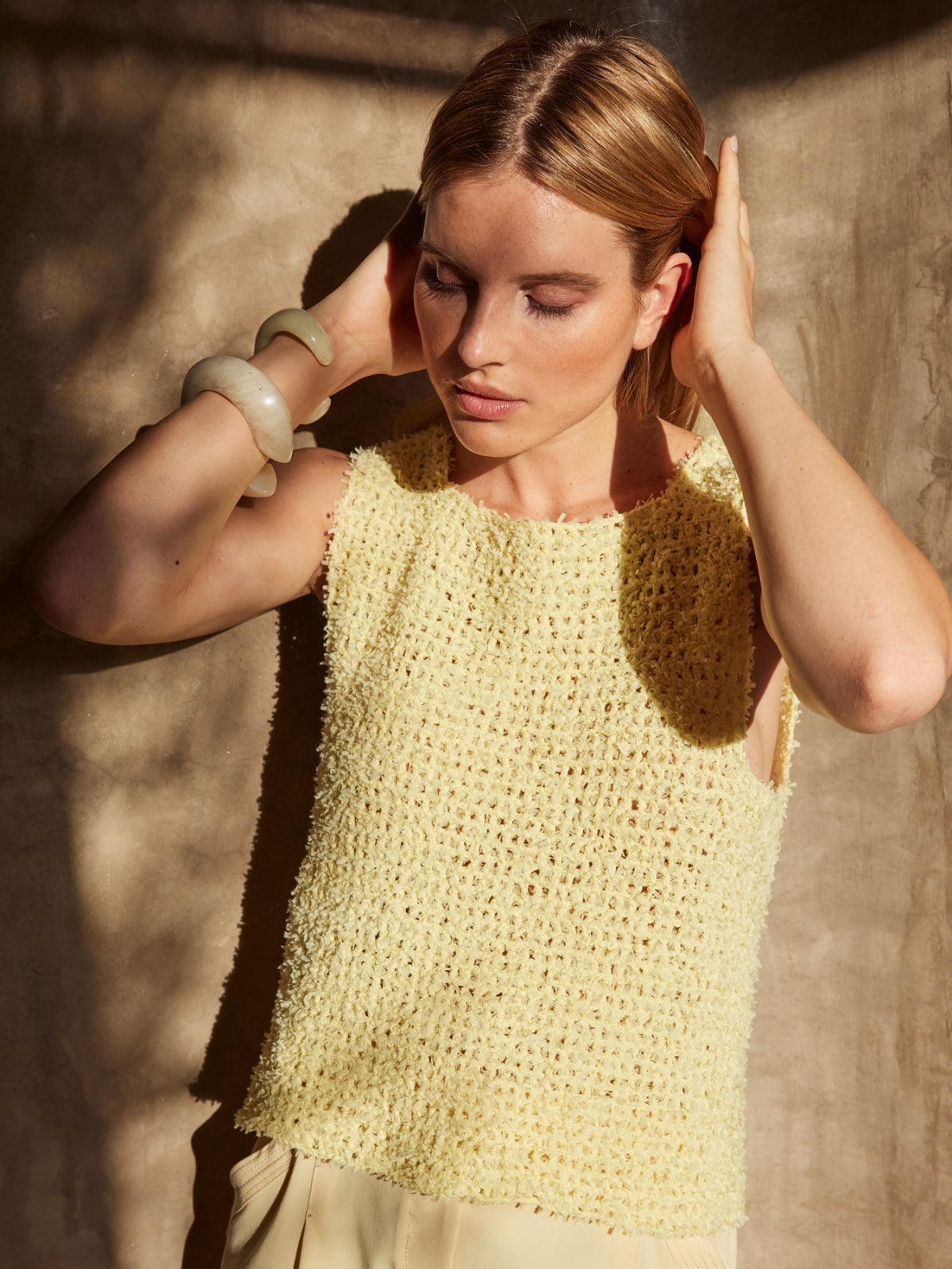 Deze gehaakte top is heerlijk om te dragen met de warmere dagen en heeft een interessante textuur door het gebruikte garen.