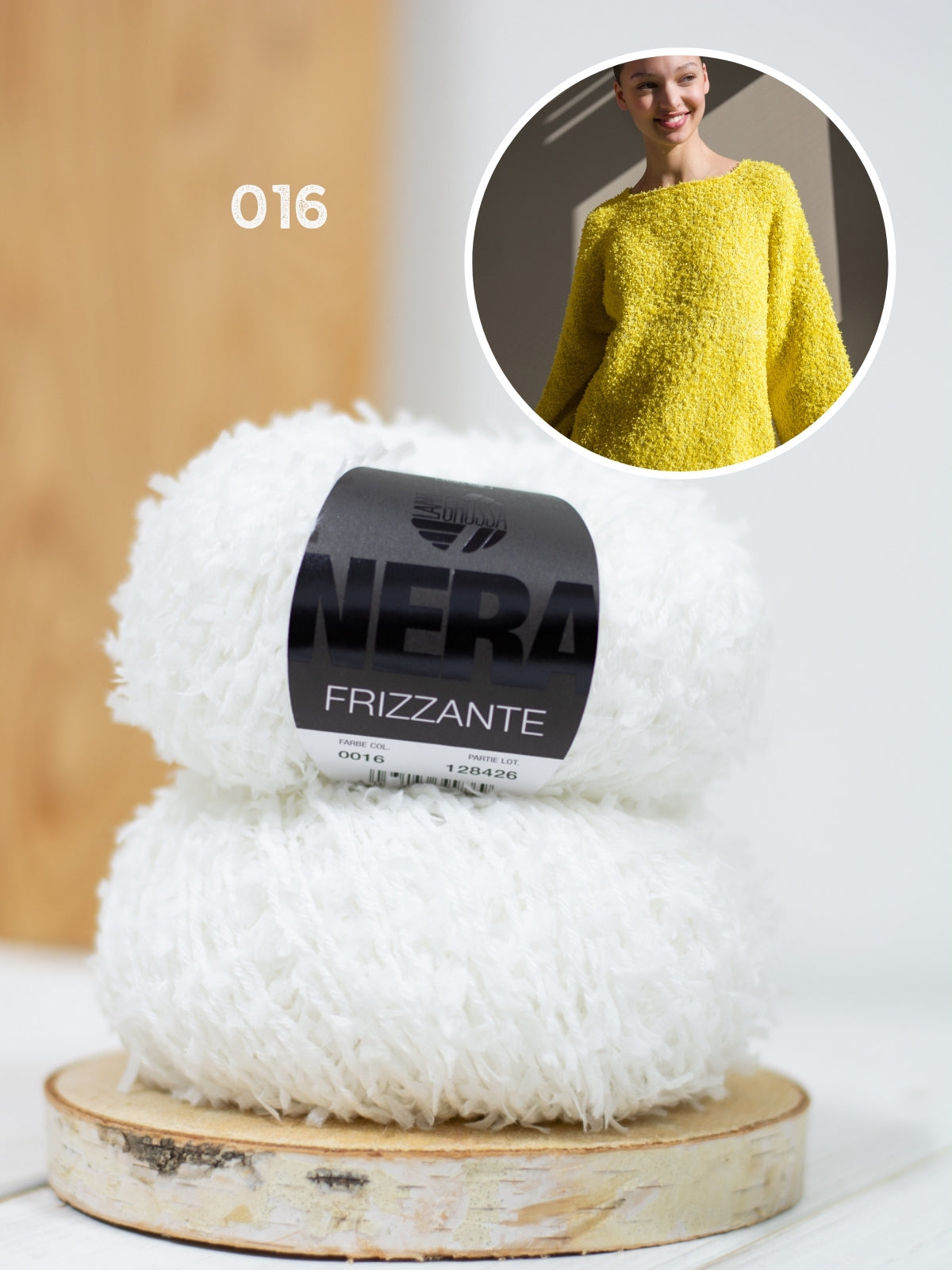De trui wordt gebreid met Frizzante, dit garen bestaat uit 54% katoen en 46% polyamide. Het patroon is uitgeschreven in maat 36 t/m 50.