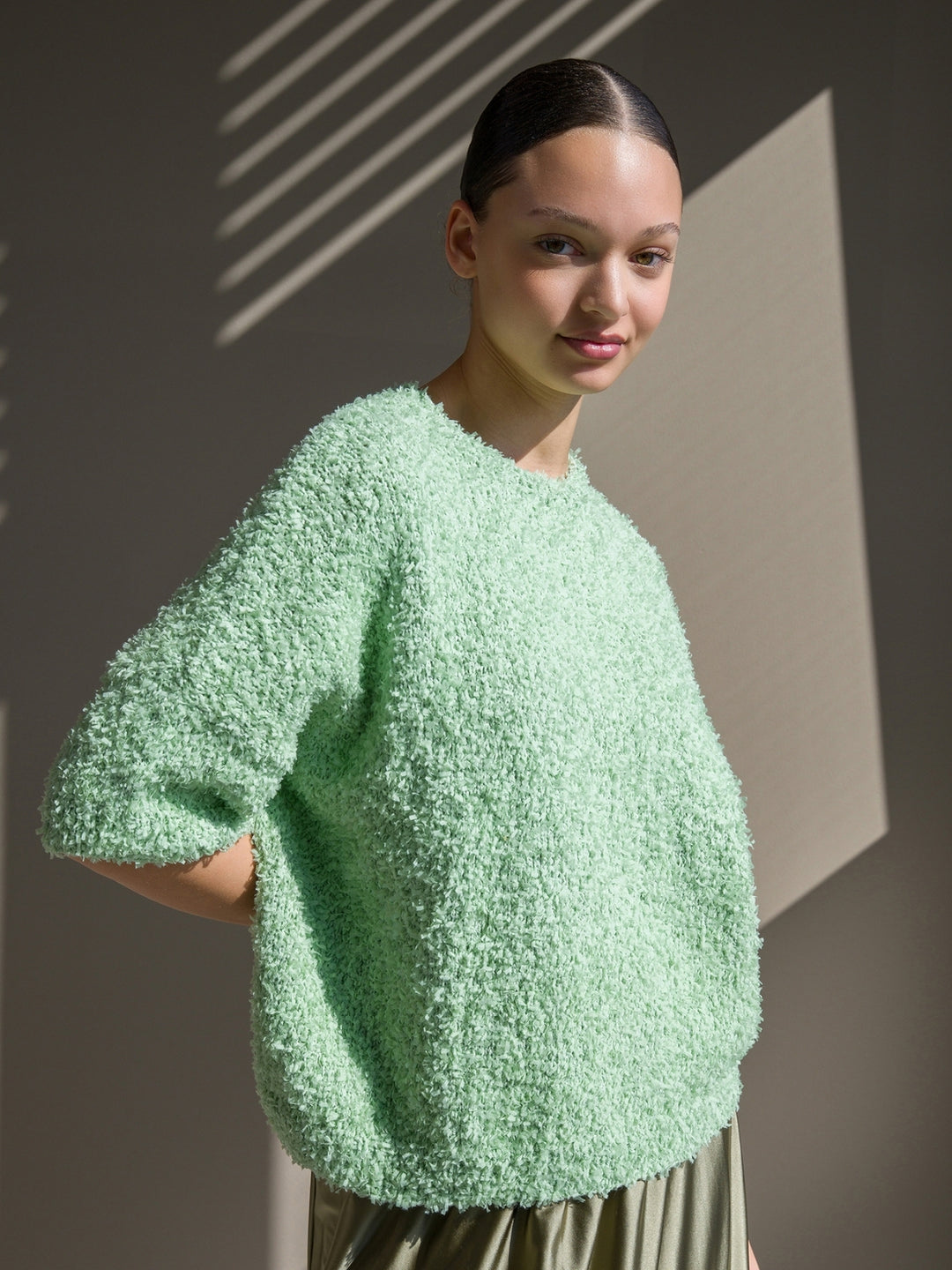 Dankzij het katoen is dit een heerlijke trui voor de zomer. De trui wordt van boven naar beneden (top-down) op rondbreinaalden gebreid.