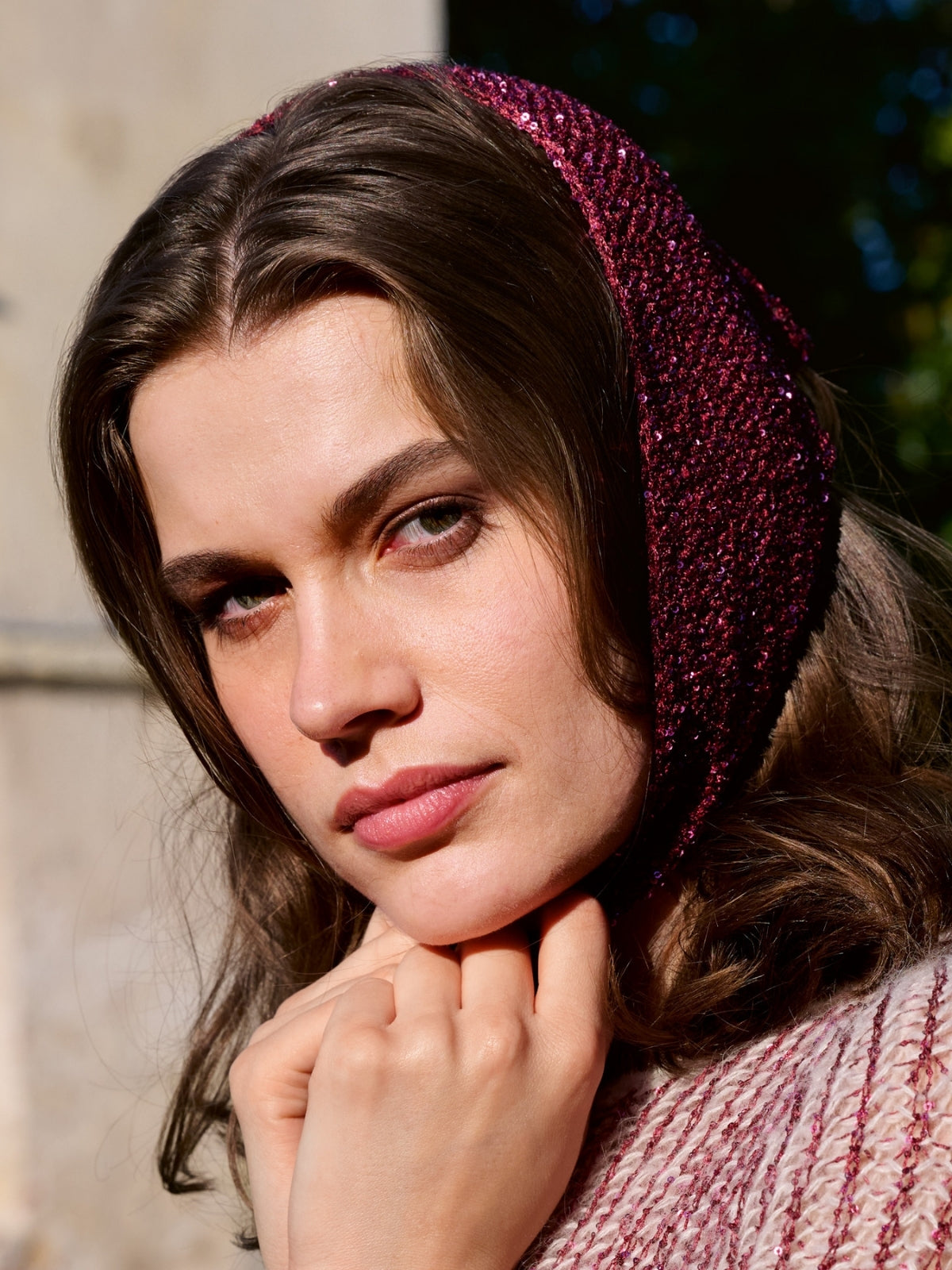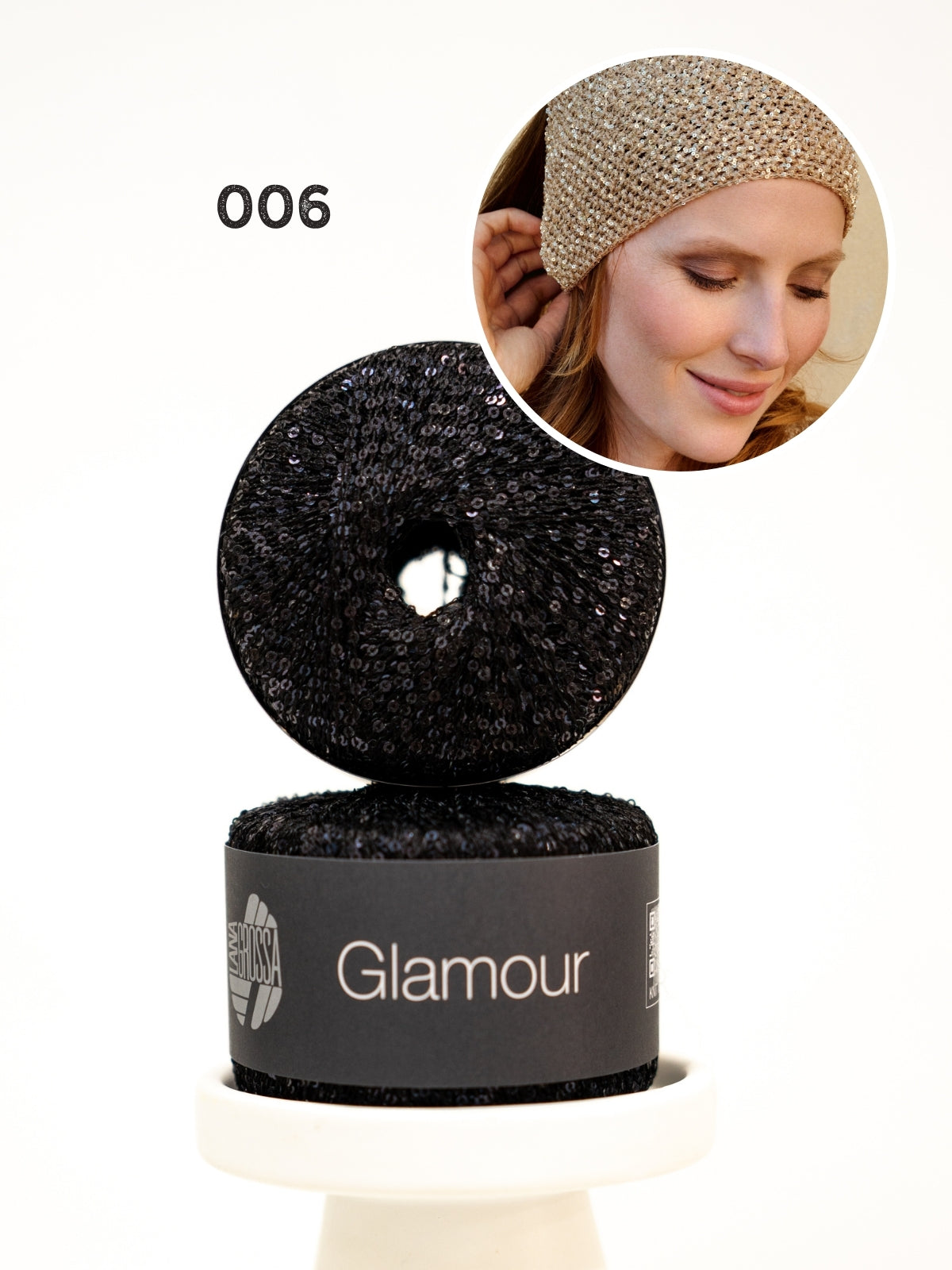 Dit leuke hoofddoekje voegt een beetje glitter toe aan elke outfit! Het doek wordt met dubbele draad gehaakt en heeft kleine pailletten.