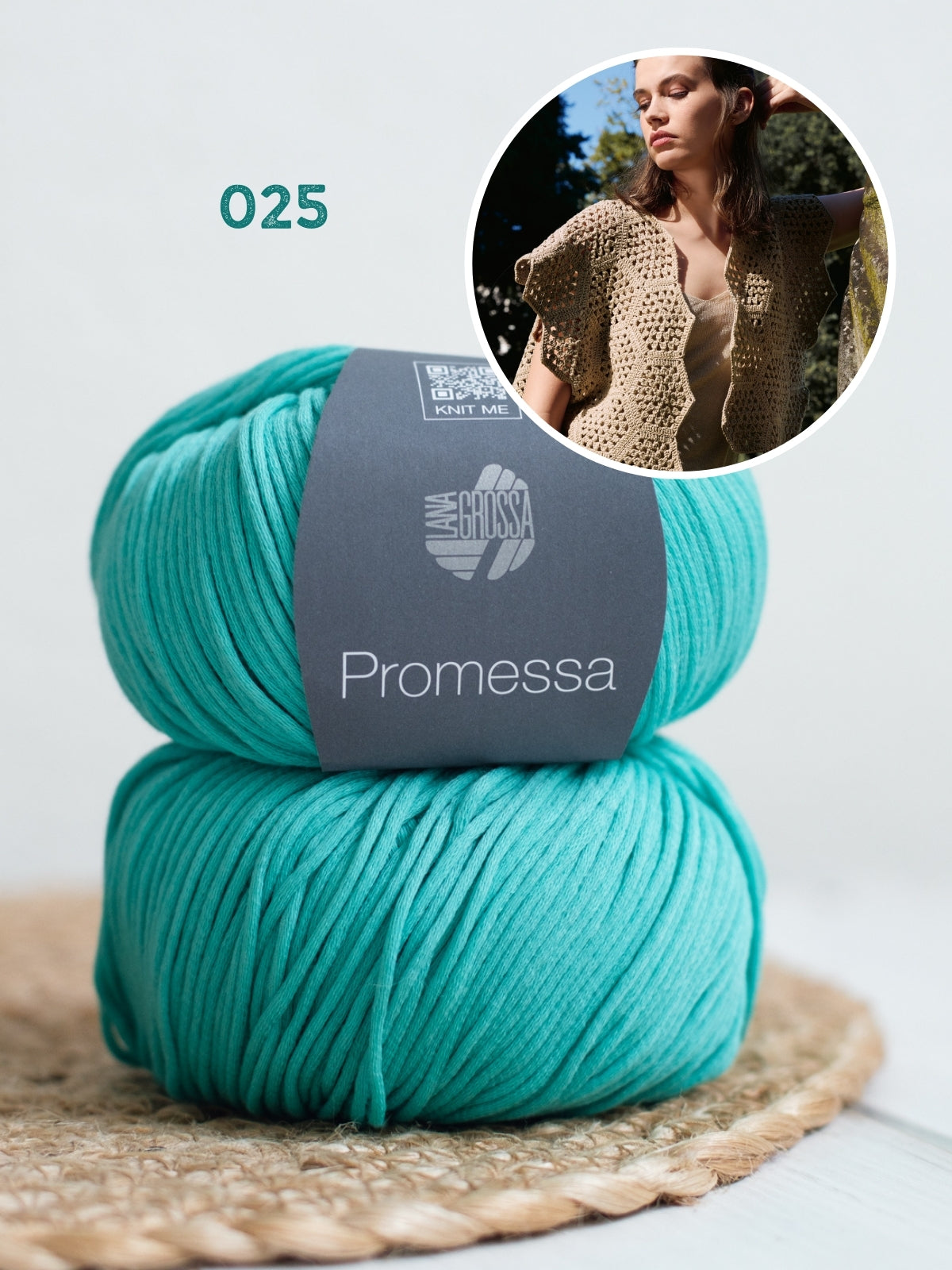 Het pakket bestaat uit 9 bollen Promessa en het Nera nr. 2 magazine van Lana Grossa. De benodigde haaknaald (4mm) kun je hieronder toevoegen aan je winkelmandje.