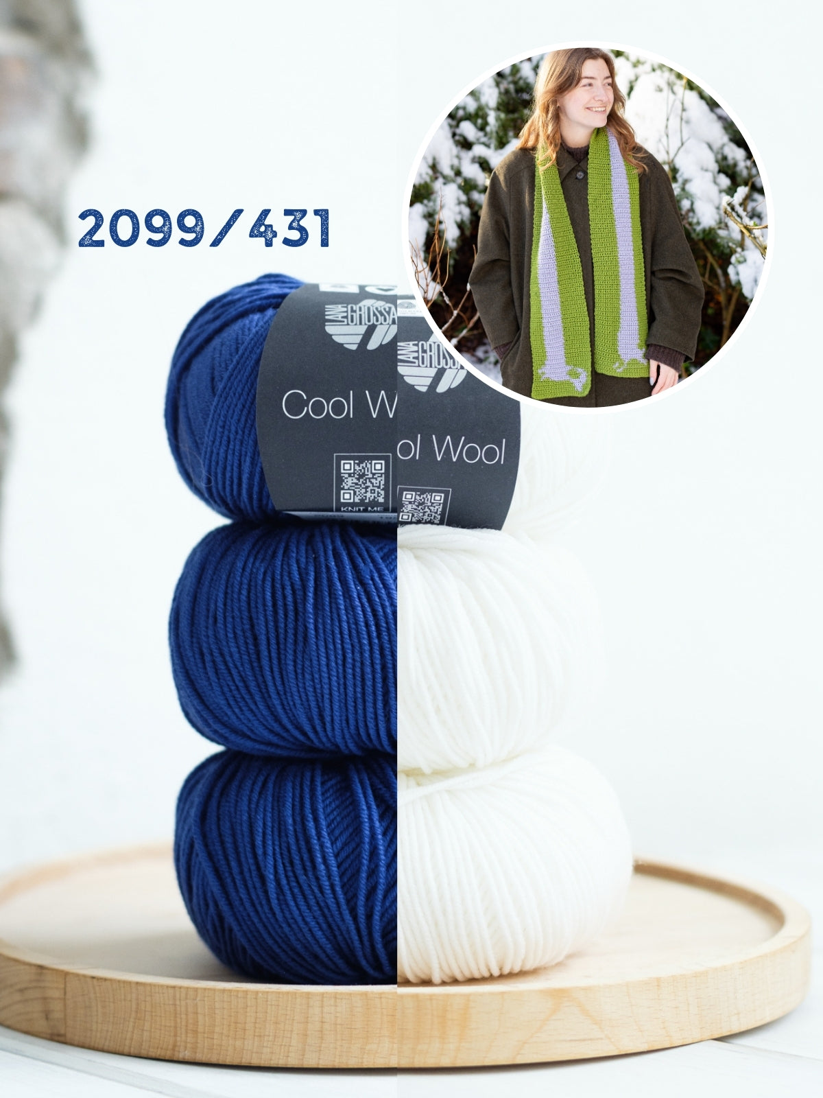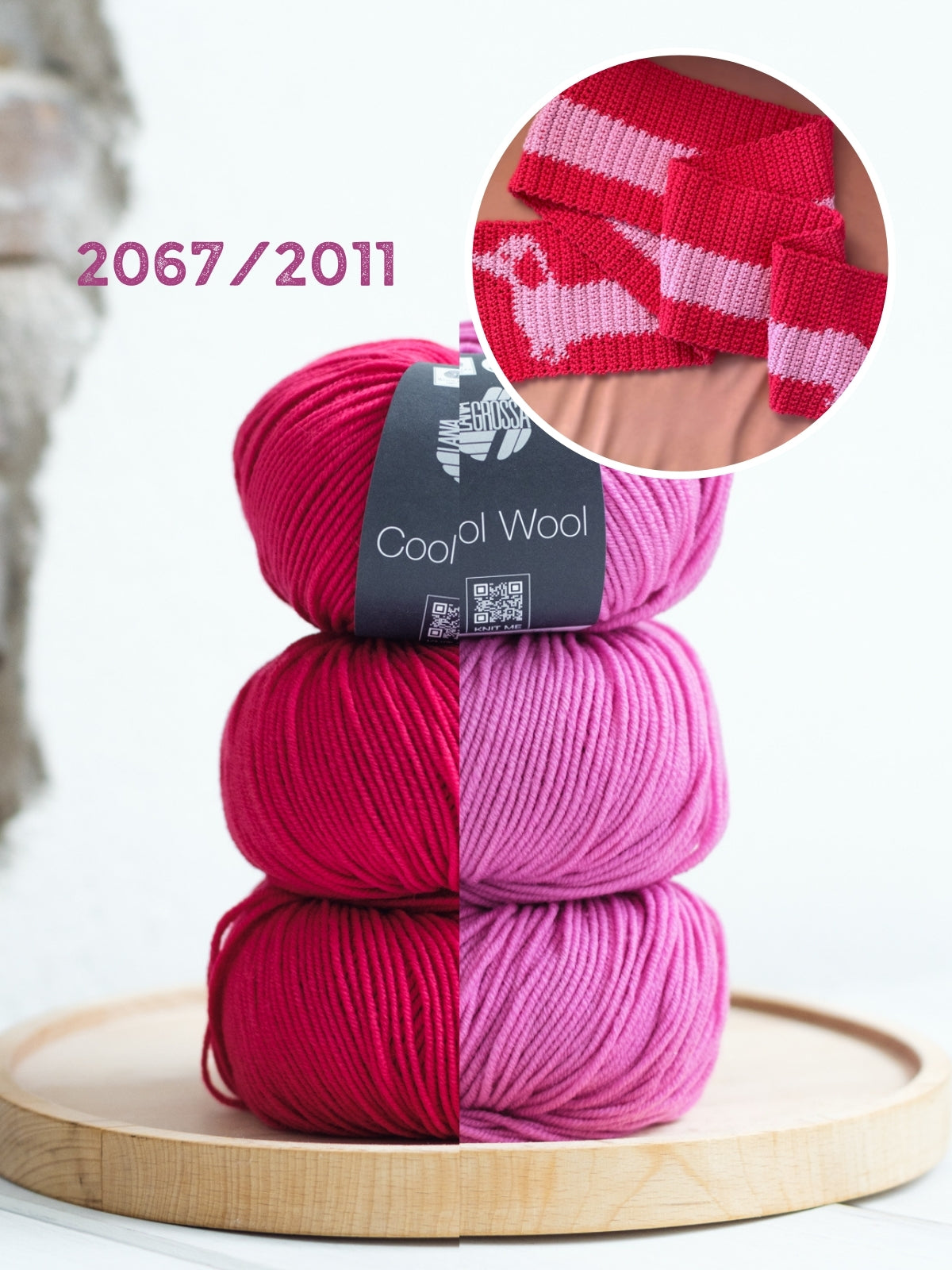Het haakpakket bestaat uit 3 bollen Cool Wool in 2 verschillende kleuren en het Duits- & Engelstalige haakpatroon. De benodigde naald (haaknaald 3.5mm) kun je hieronder toevoegen aan je winkelmandje.